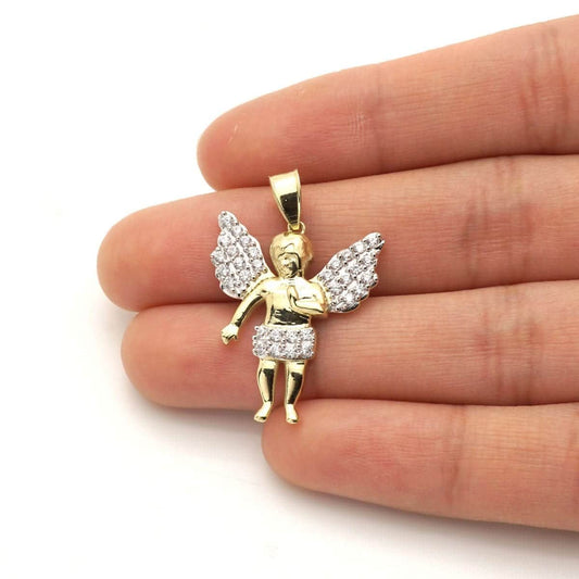 Shop real gold and diamond angel pendants symbolizing protection, strength, and divine guidance. Available in detailed cherub, guardian, and winged designs. Free shipping, free returns, lifetime warranty.