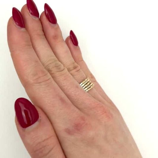 - Wear a cocktail ring as the centerpiece of your look—no stacking needed.