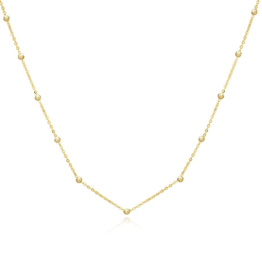 Chic Saturn and station necklaces featuring evenly spaced decorative accents. Perfect for layering or wearing as a subtle statement piece.