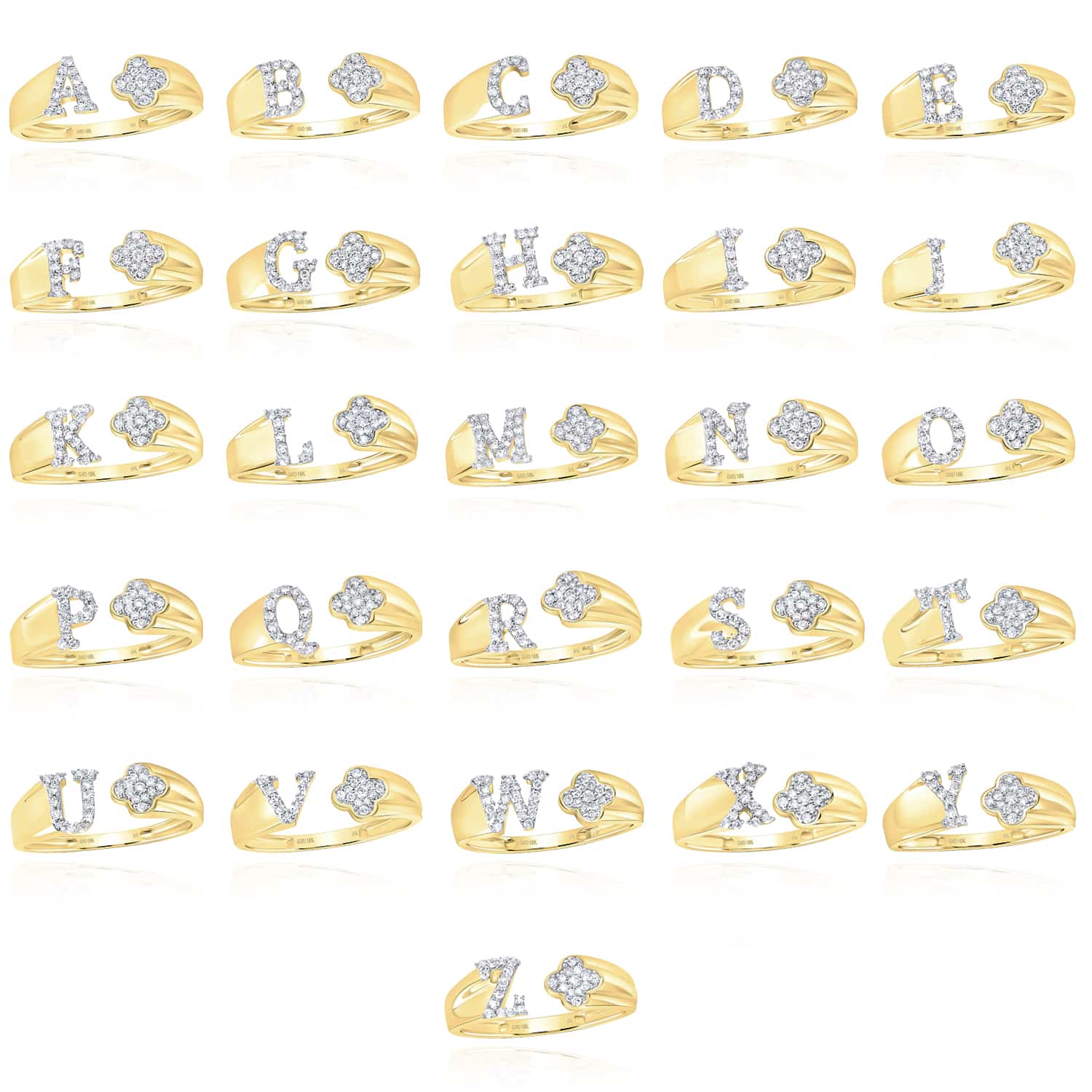 Read full return policy0.12CTW Natural Diamond 10K Yellow Gold Clover Leaf Initial Cocktail Open Ring