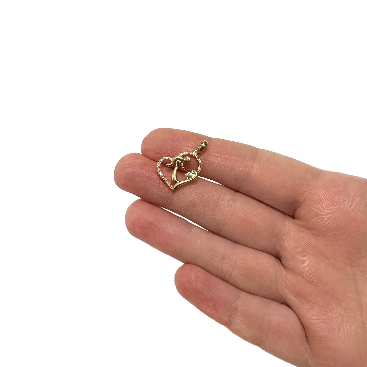 0.14CTW Natural Diamond 10K Gold Mother Child Open Heart Pendant 0.7"