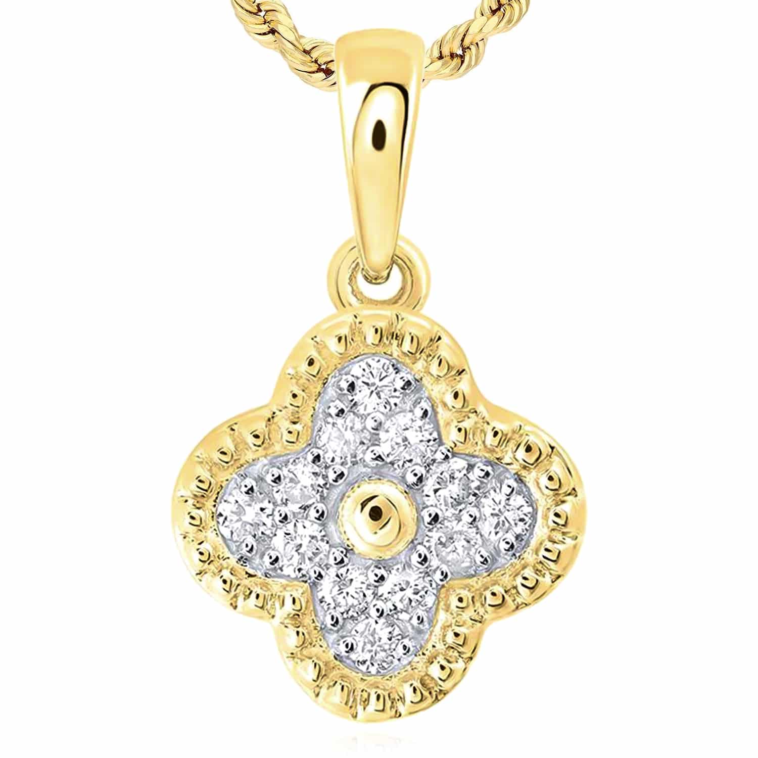 Read full return policy0.20CTW Natural Diamond 10K Gold Yellow White Clover Leaf Pendant 0.65"