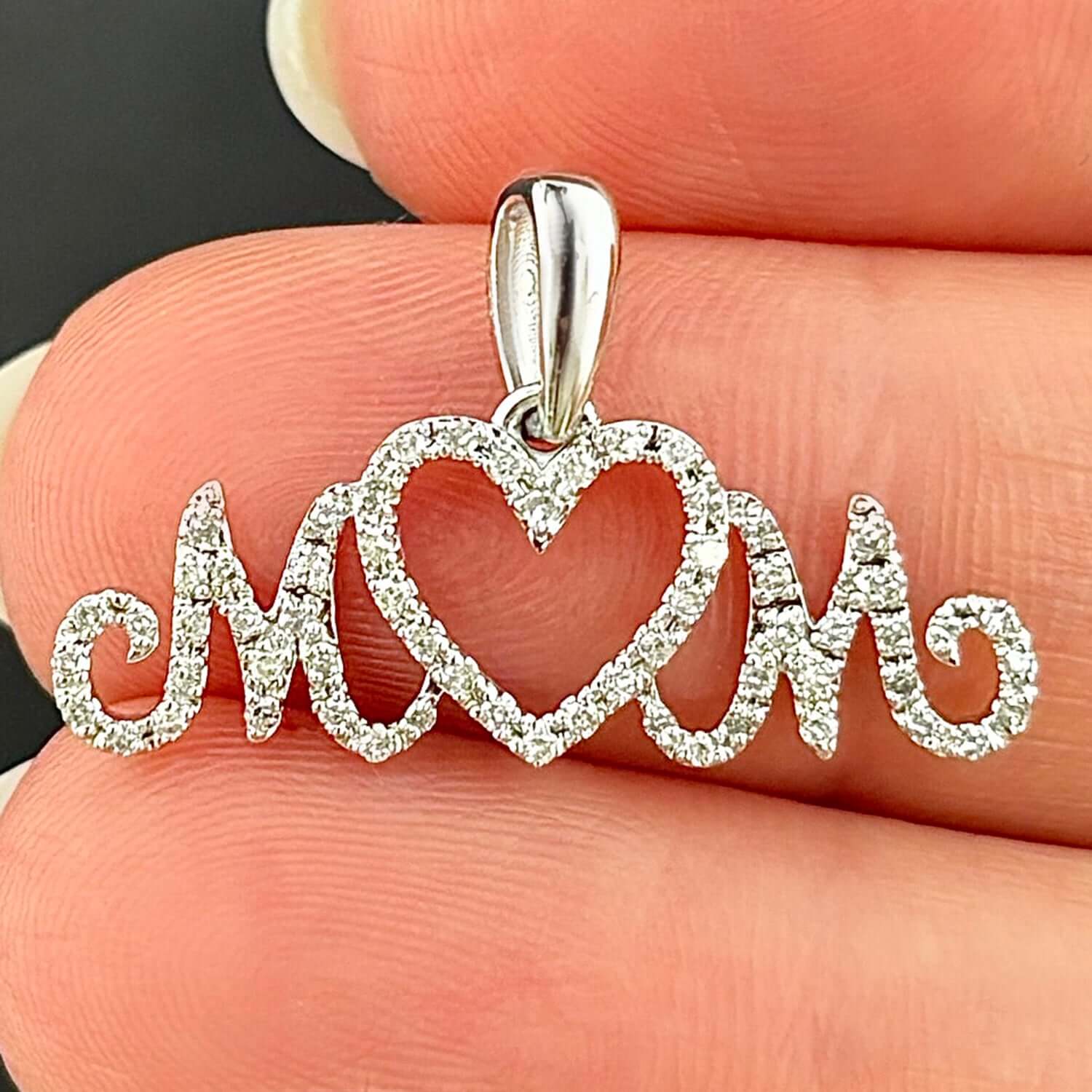 0.20CTW Natural Diamond Real 10K White Gold "MOM" Pendant 0.5"Couldn't load pickup availability