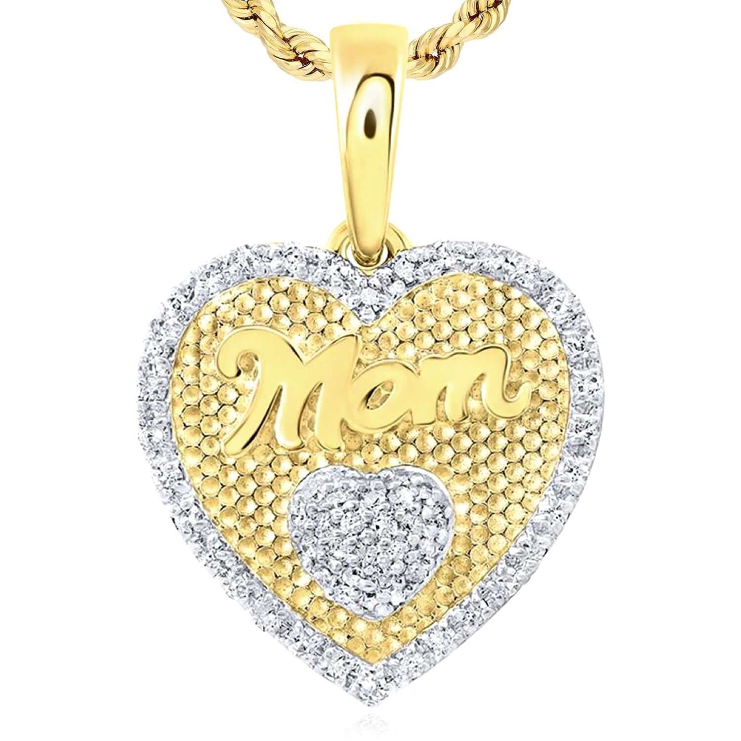 0.20CTW Natural Diamond Real 14K Gold Textured "Mom" Heart Pendant 0.8"Couldn't load pickup availability