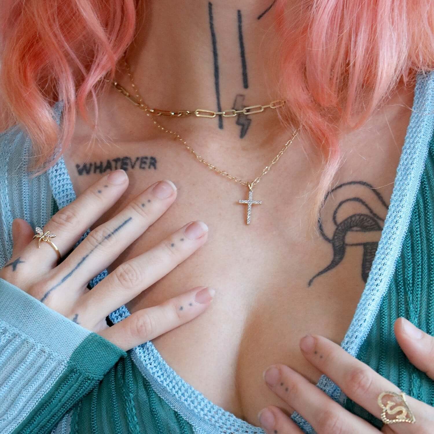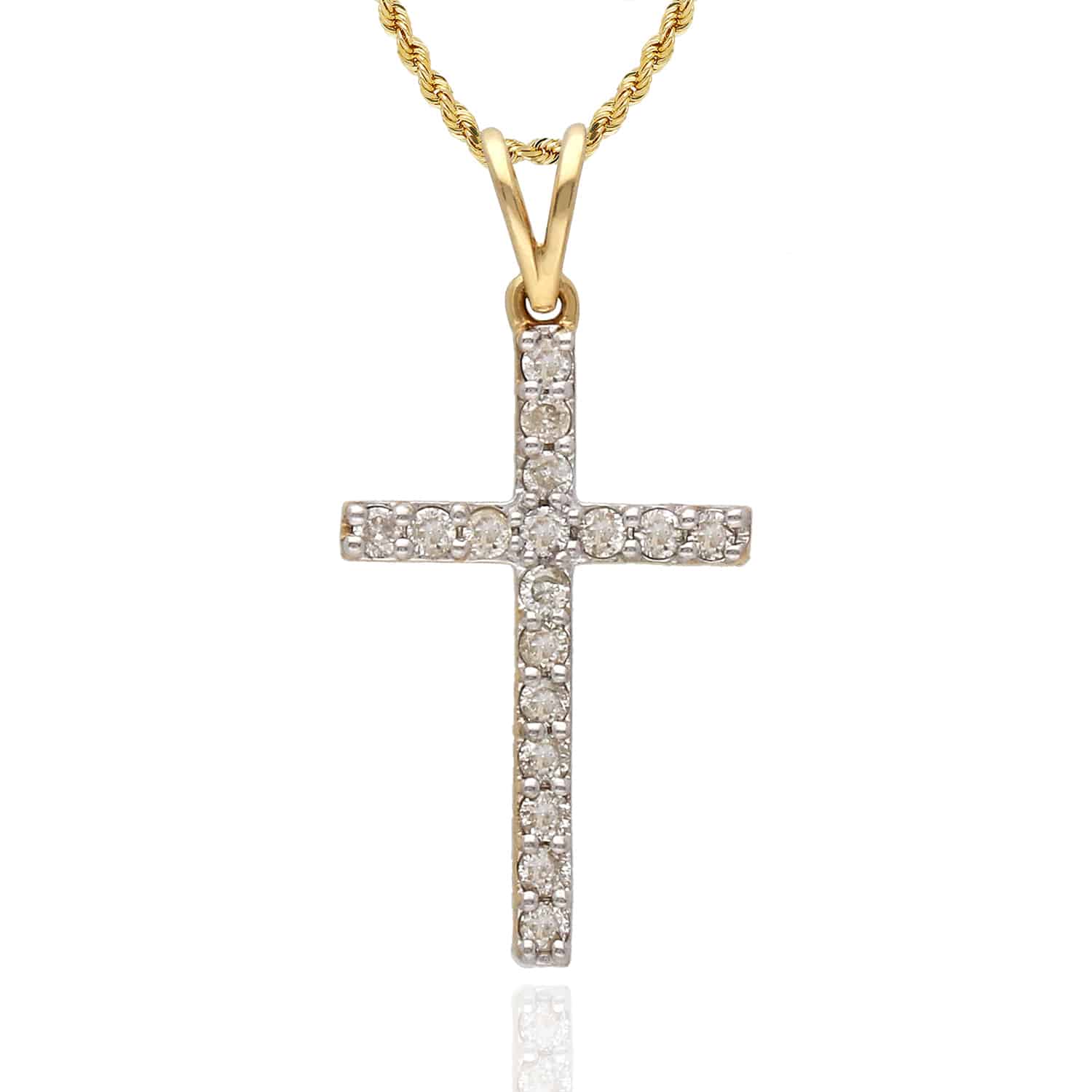 Read full return policy0.25CTW Natural Diamond 14K Yellow Gold White Cross Pendant 1"