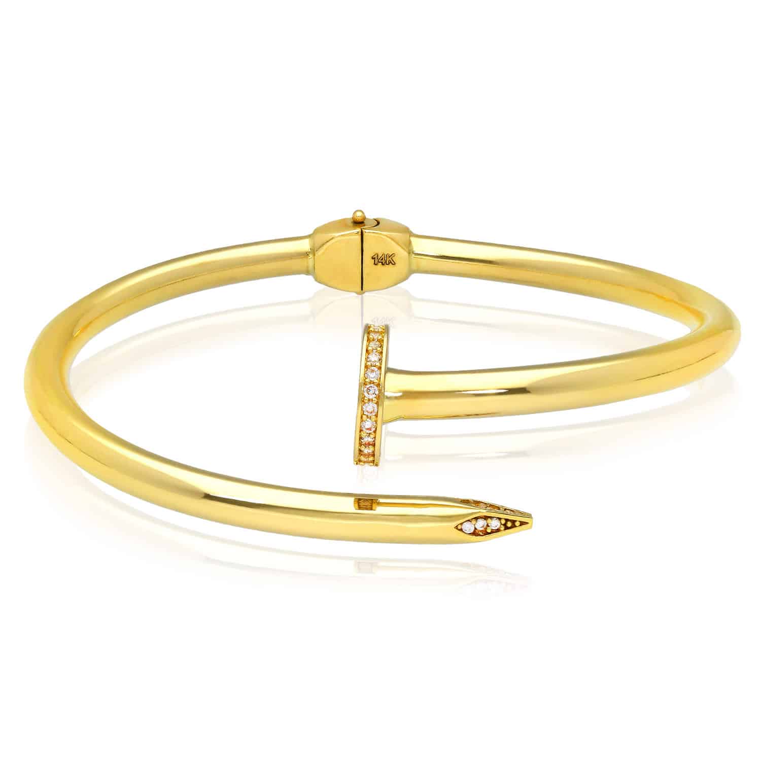 Read full return policy0.30CTW CZ 4mm 14K Yellow Gold Spike Cuff Bangle Bracelet 6.75"