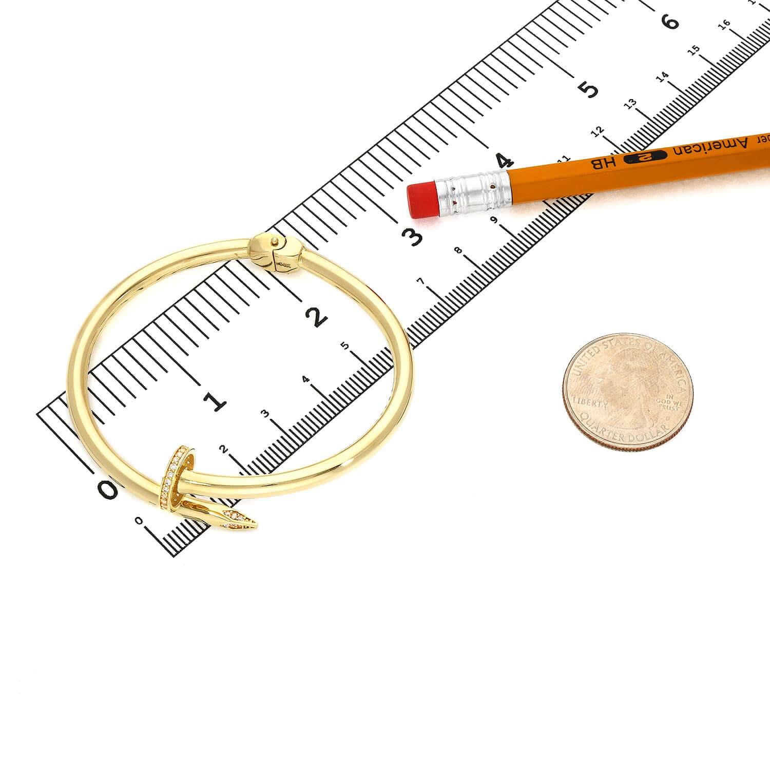 0.30CTW CZ 4mm 14K Yellow Gold Spike Cuff Bangle Bracelet 6.75"Couldn't load pickup availability