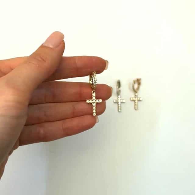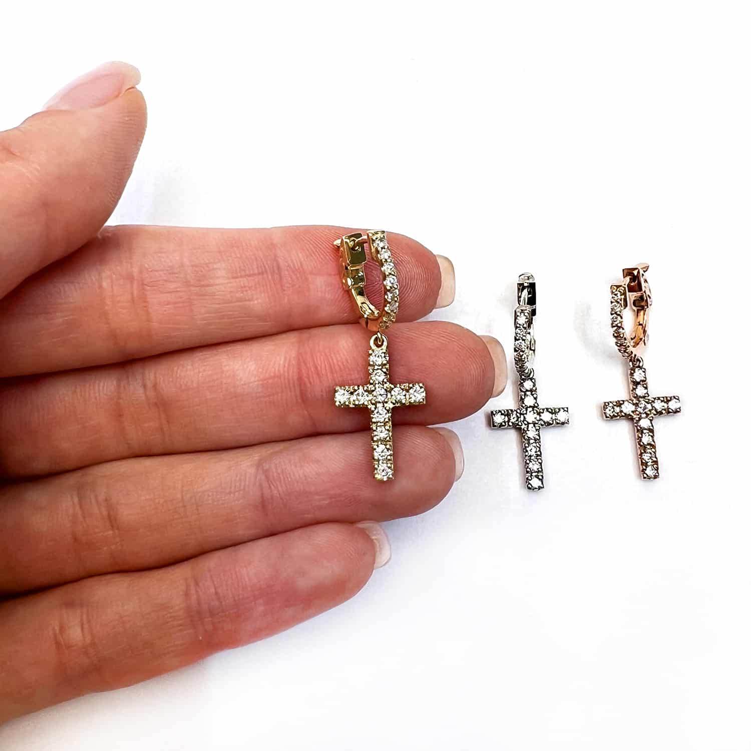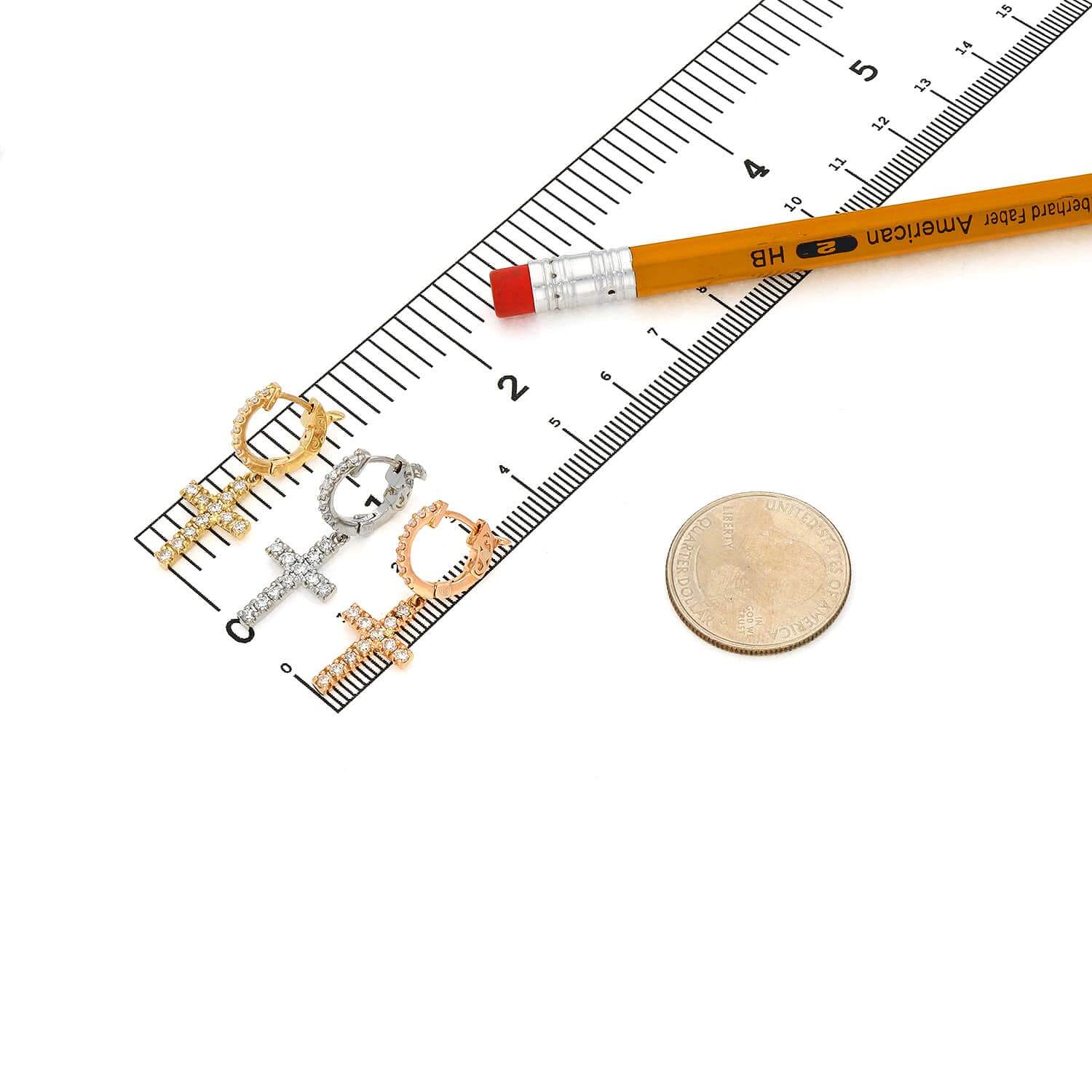 0.45CTW Natural Diamond 14K Gold Dangling Cross Hoop Earring 30mm Single EarringCouldn't load pickup availability
