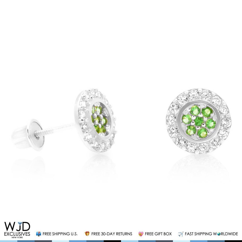 0.50CTW CZ Peridot 14K White Gold Halo Stud EarringsCouldn't load pickup availability