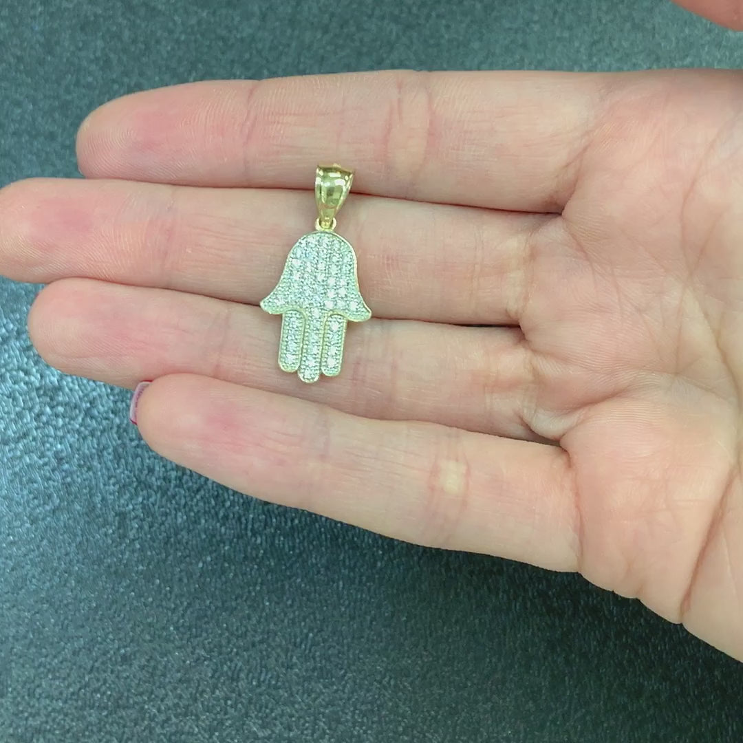 14K Gold 0.50CTW CZ Hamsa Hand Of Fatima Pendant 1"Couldn't load pickup availability