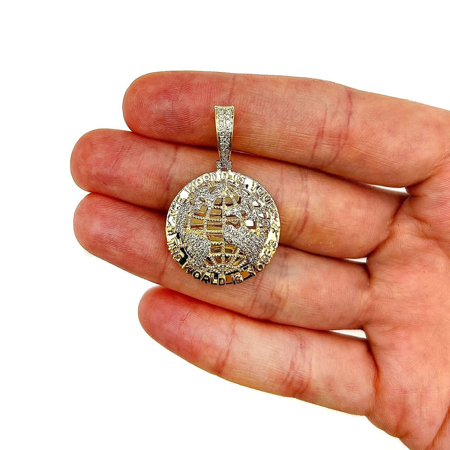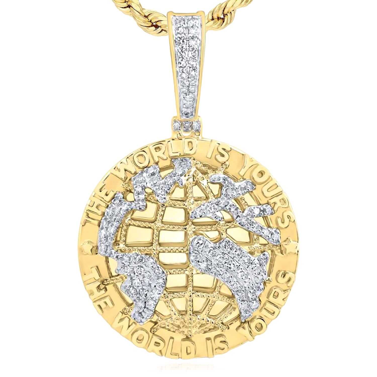 0.50CTW Natural Diamond 10K Yellow Gold The World is Yours Globe Pendant 1.5"Couldn't load pickup availability