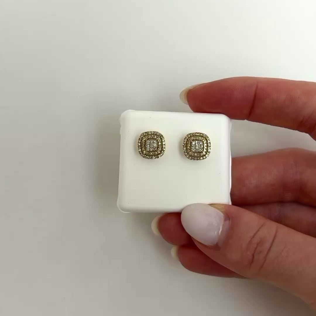 Returns policy →0.50CTW Natural Diamond 10K Gold 11mm Cushion Halo Stud Earrings – Screw Back