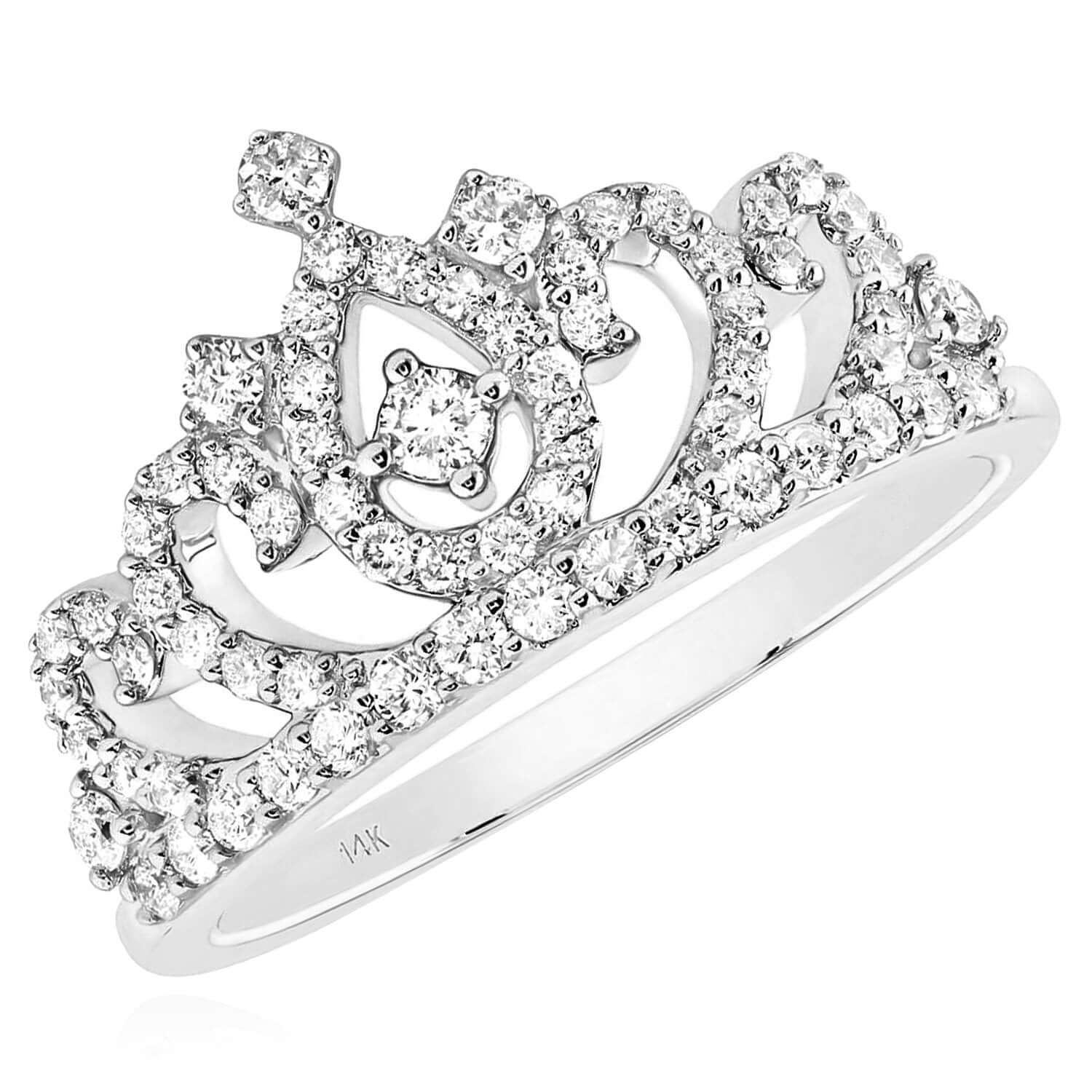 Read full return policy0.50CTW Natural Diamond 14K Yellow Gold White Rose Crown Tiara Cocktail Ring