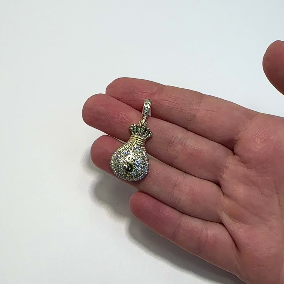 Read full return policy0.60CTW Natural Diamond 10K Yellow Gold Money Bag Pendant 1.5"