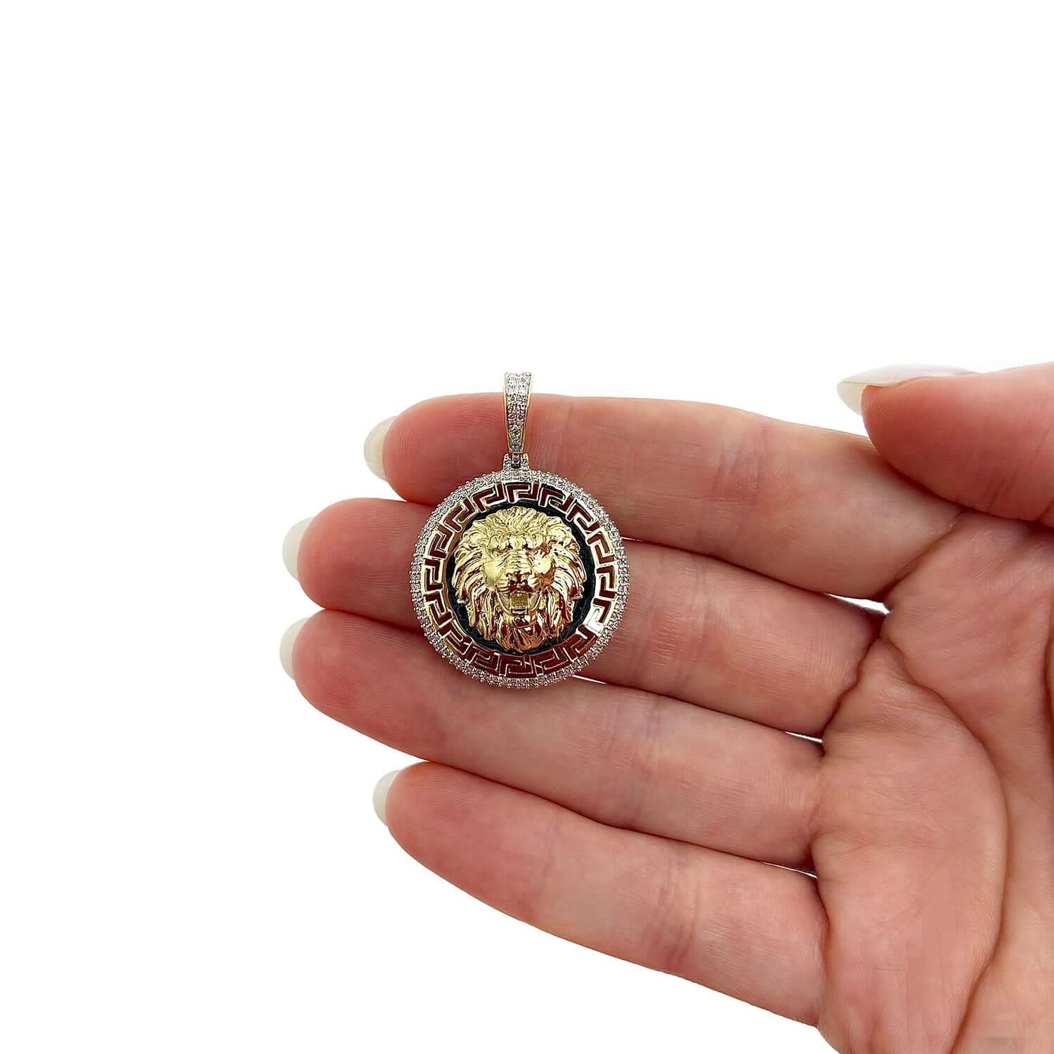 Read full return policy0.62CTW Natural Diamonds 10K Gold Lion Head Medallion Pendant 1.6"