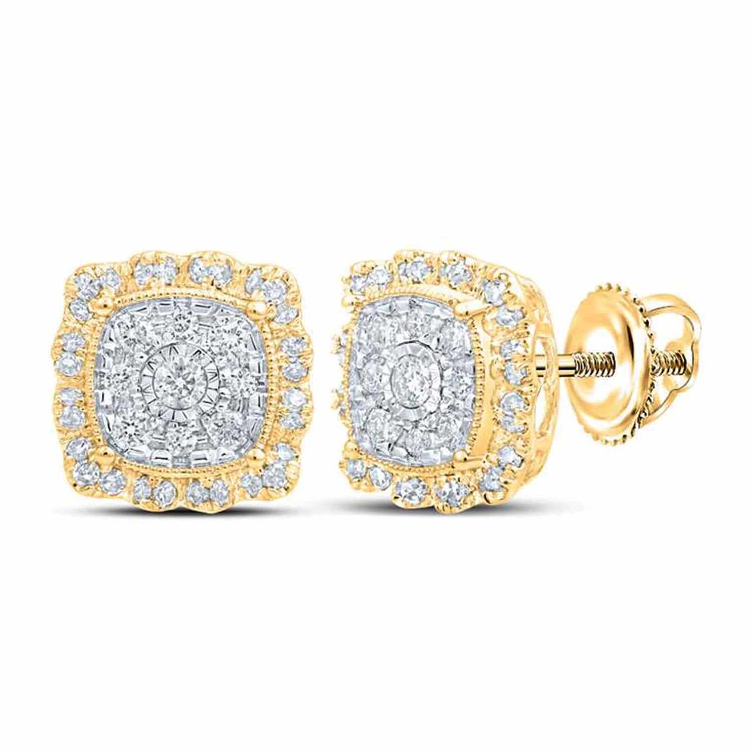 0.65CTW Natural Diamond 10K Gold Round Cluster Square Stud EarringsCouldn't load pickup availability