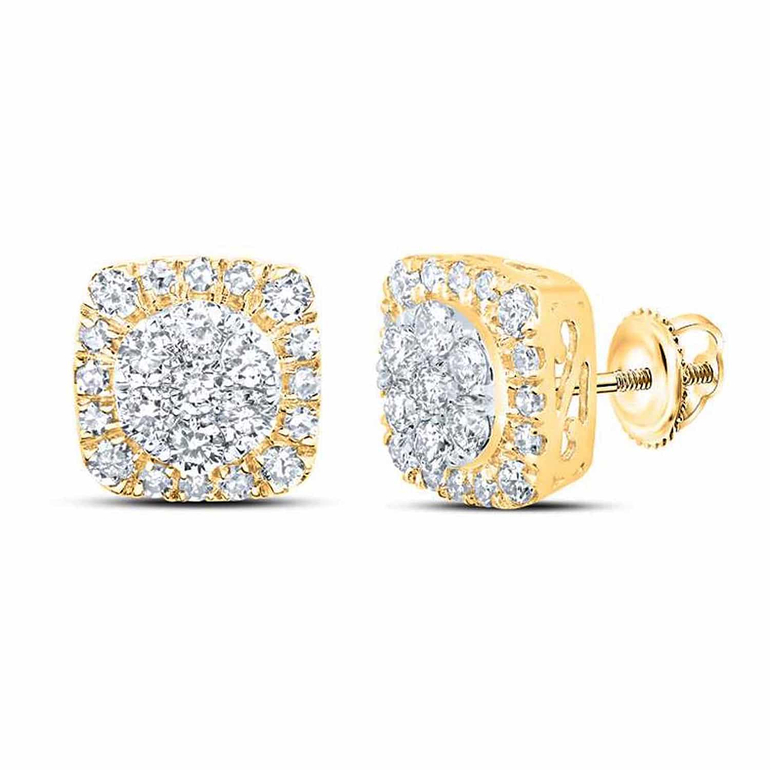 Read full return policy0.70CTW Natural Diamond 10K Gold Square Cluster Screw Back Stud Earrings
