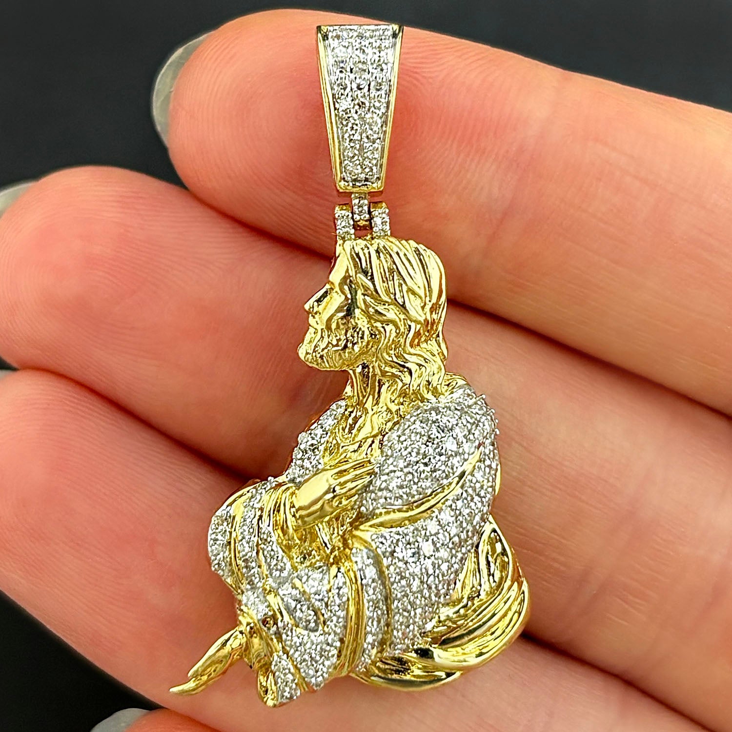 Read full return policy0.75CTW Natural Diamond 10K Yellow Gold Jesus Pendant 1.65"