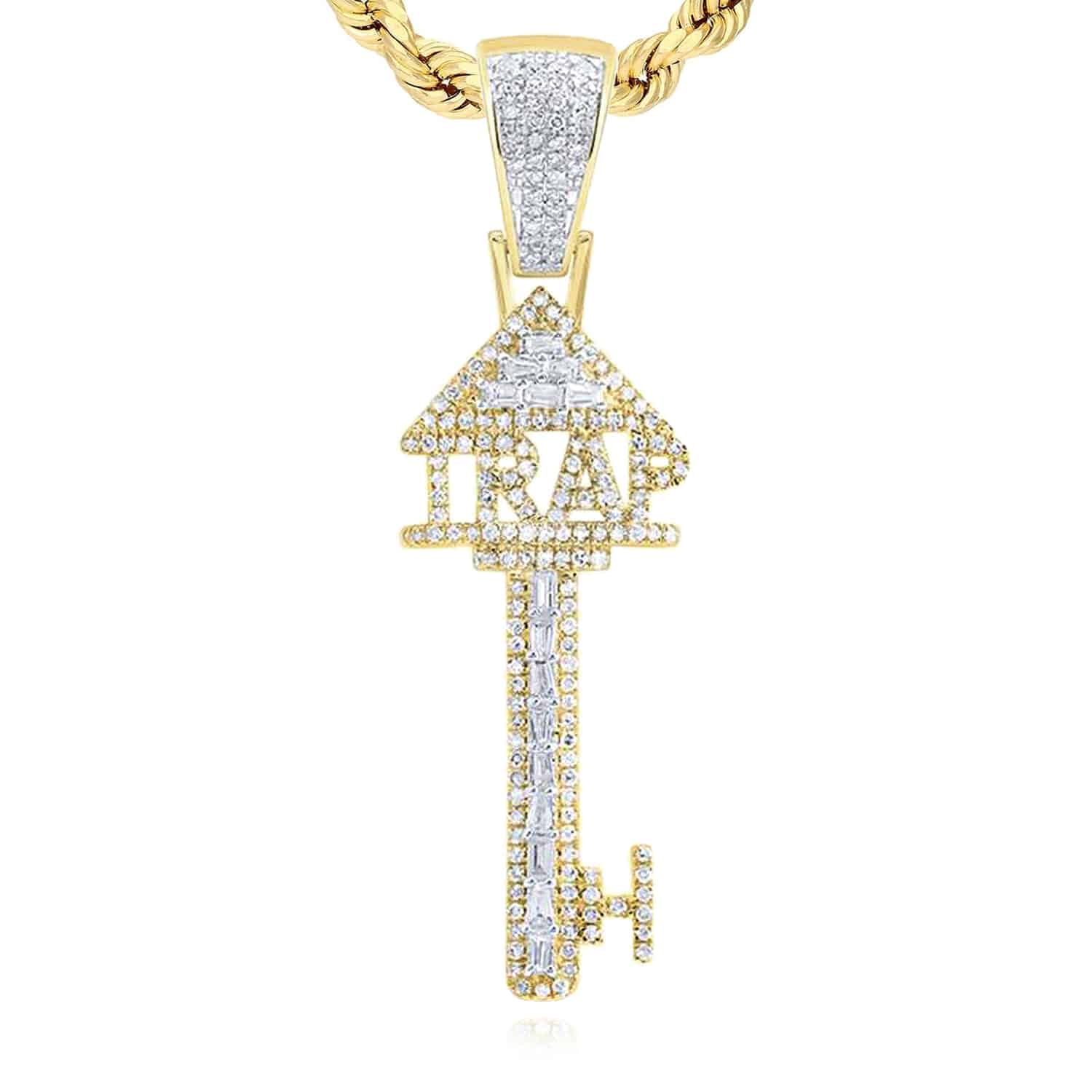 Read full return policy0.75CTW Natural Diamond 10K Yellow Gold Trap Key Pendant 1.9"