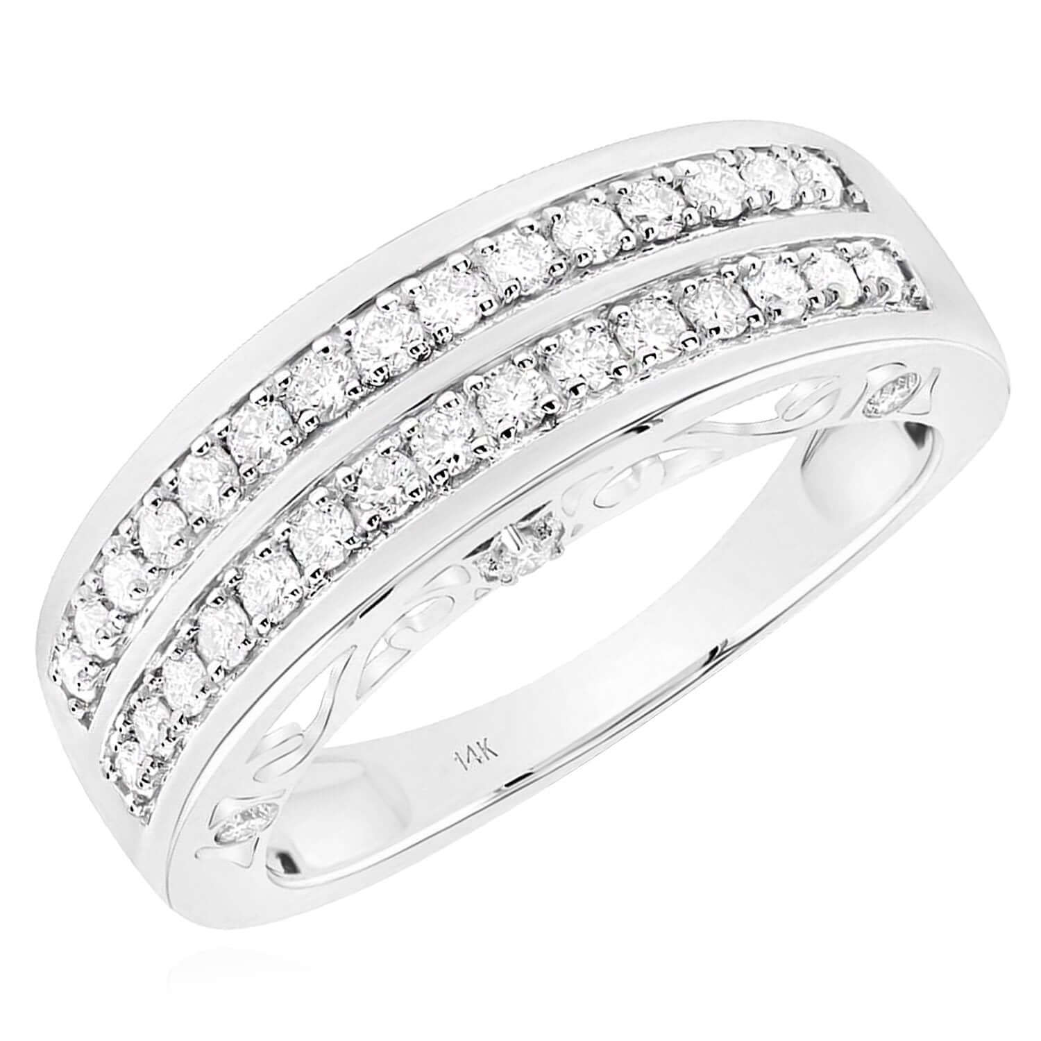 Read full return policy0.75CTW Natural Diamond 14K Gold Two-Row Yellow & White Wedding Band Ring
