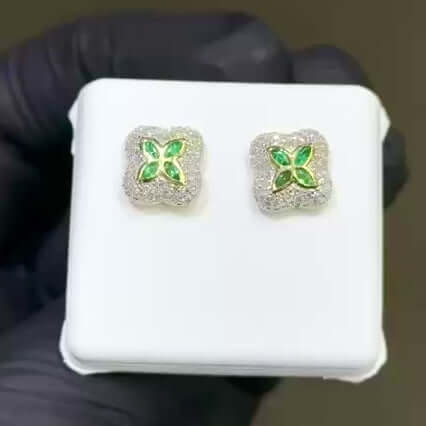 Elevate your jewelry collection with these stunning clover stud earrings. Crafted in real 10K gold, they showcase vibrant rubies or emeralds, and sparkling natural diamonds for a refined, timeless look. A secure screw-back design makes them perfect for daily wear or special occasions.