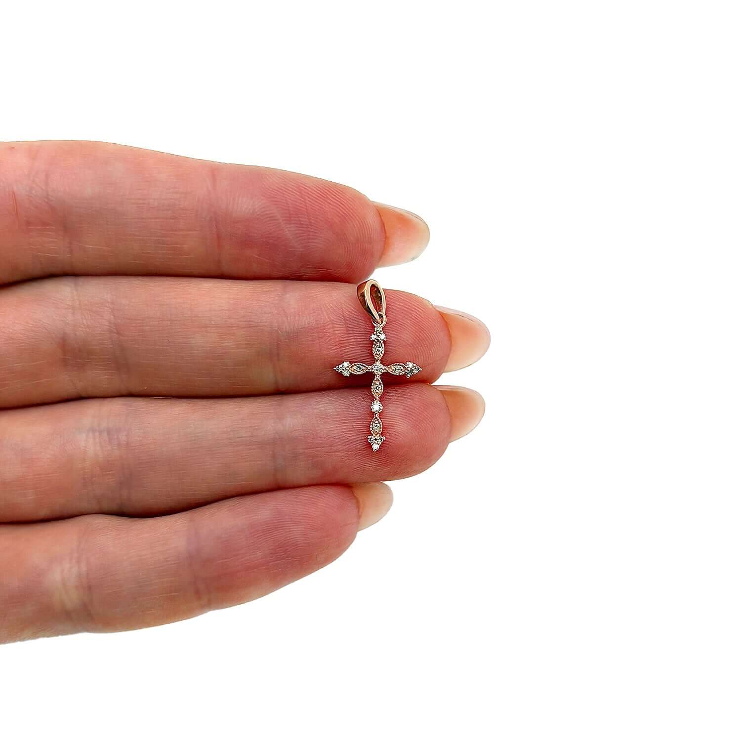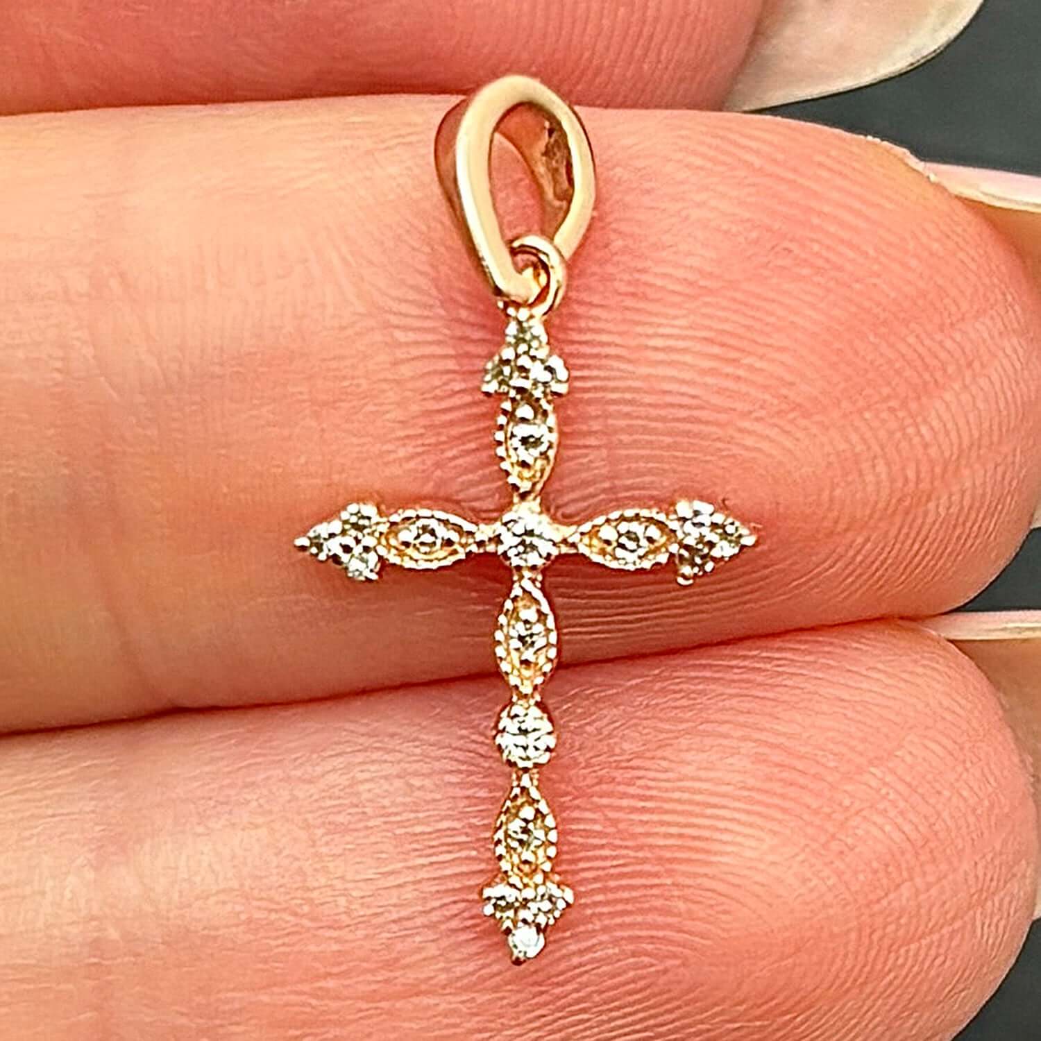 .08CTW Natural Diamond 10K Gold Yellow White Rose Milgrain Cross PendantCouldn't load pickup availability