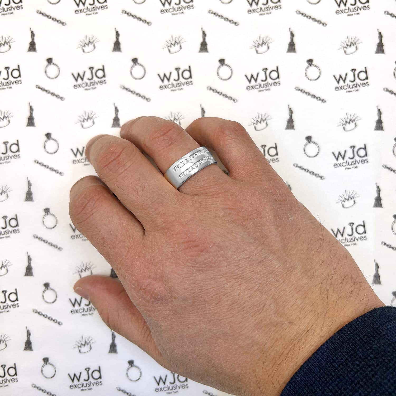Read full return policy1.10CTW Natural Diamond Two Row Channel Set 14K Gold White 9mm Wedding Ring Band