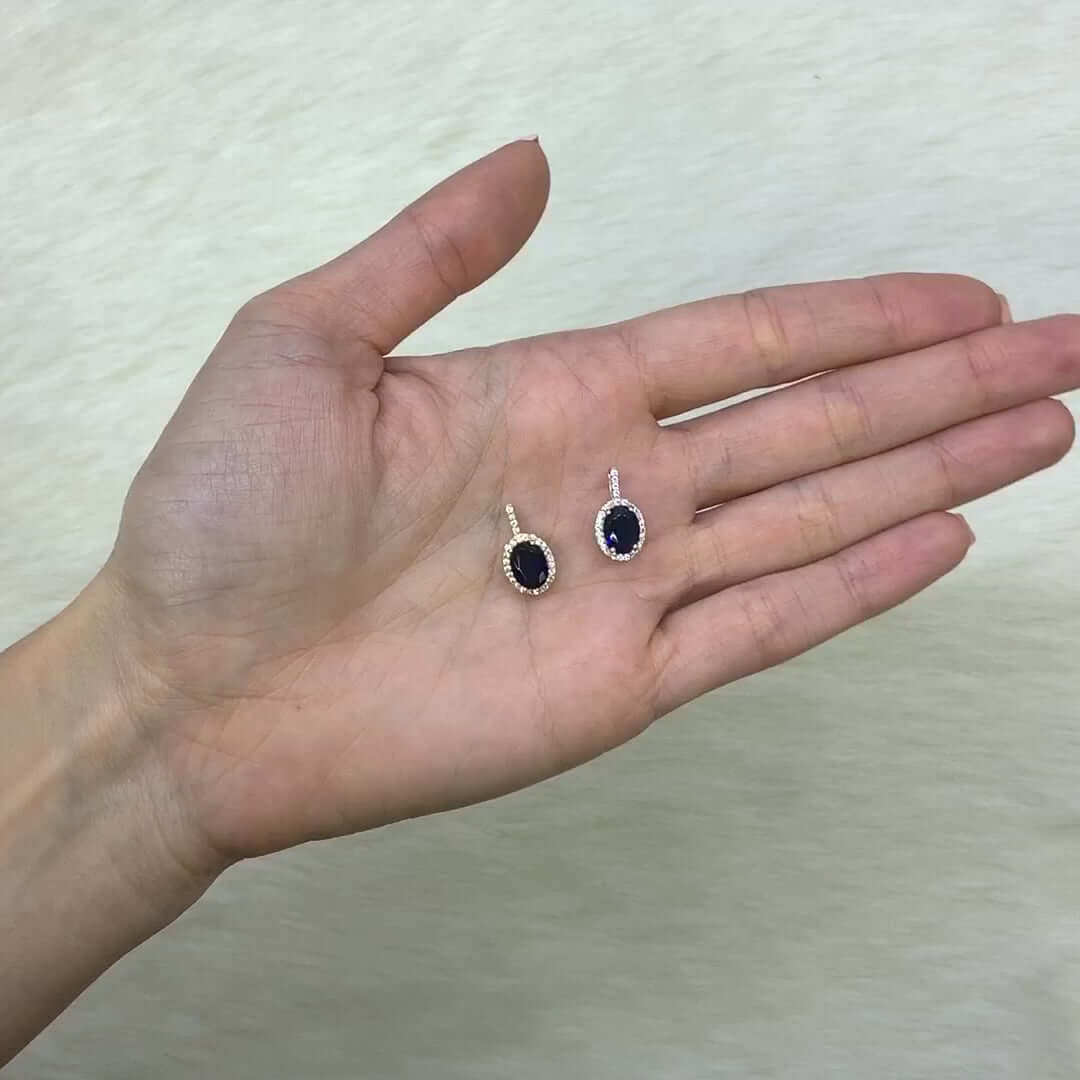 1.25Ct CZ Blue Sapphire Halo Pendant 14K Yellow White Gold 18"Couldn't load pickup availability