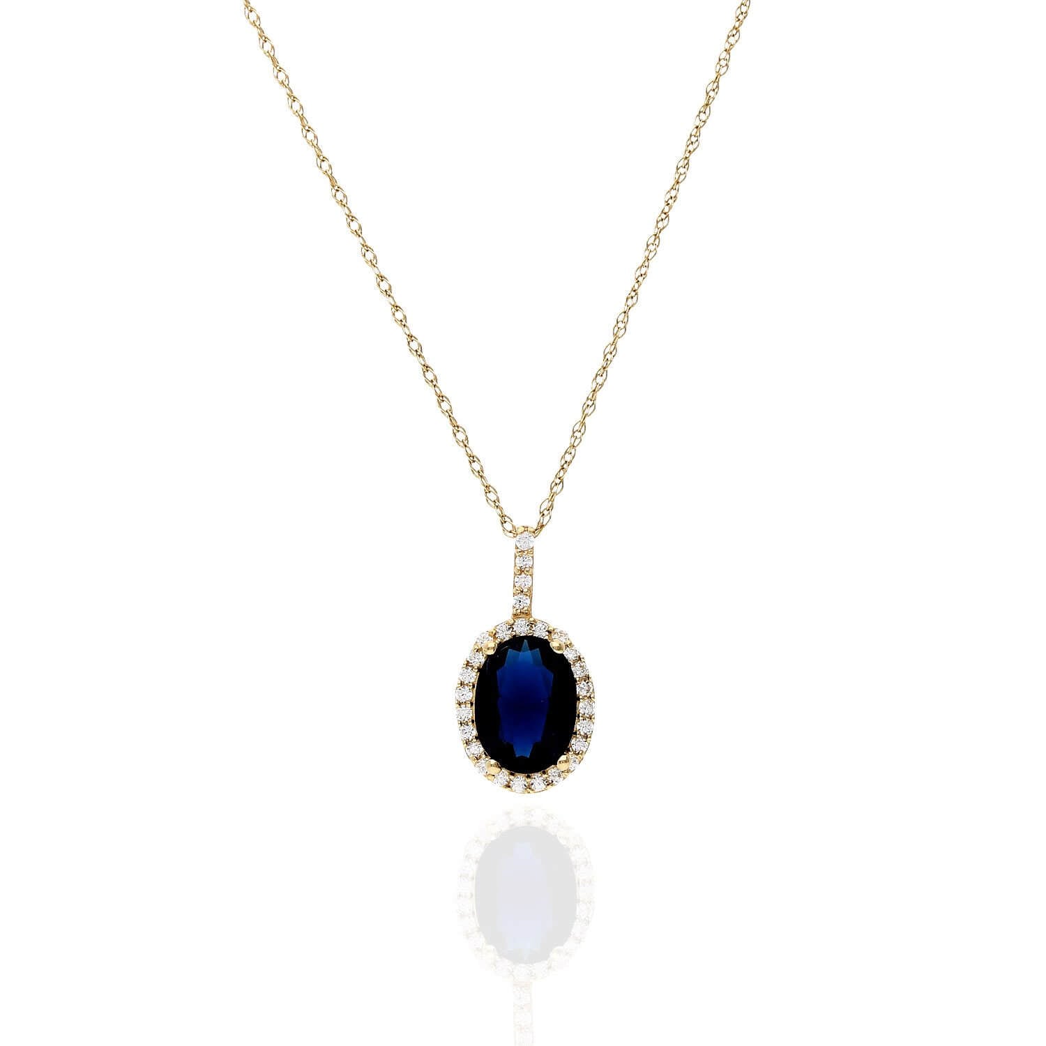 Read full return policy1.25Ct CZ Blue Sapphire Halo Pendant 14K Yellow White Gold 18"