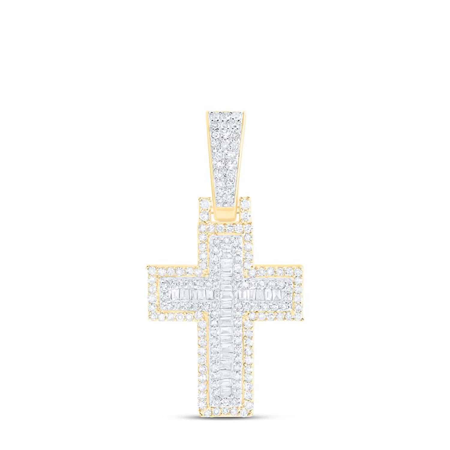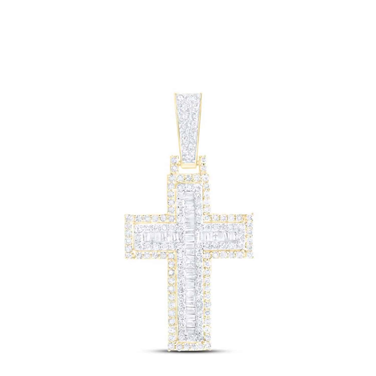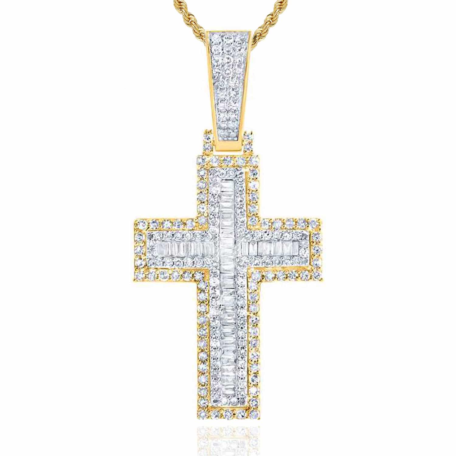 Read full return policyNatural Diamond Round Baguette 10K Yellow Gold Cross Pendant 1.2"- 1.8"