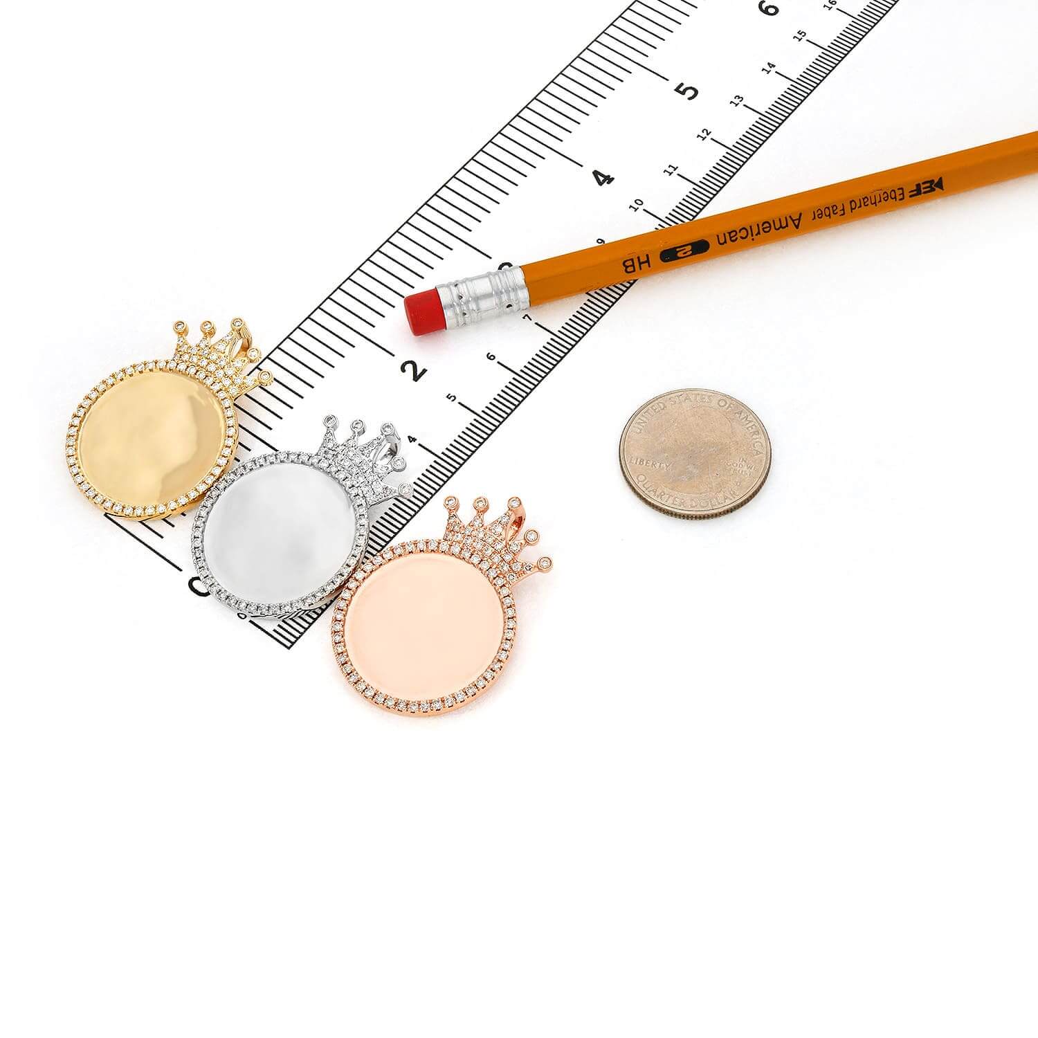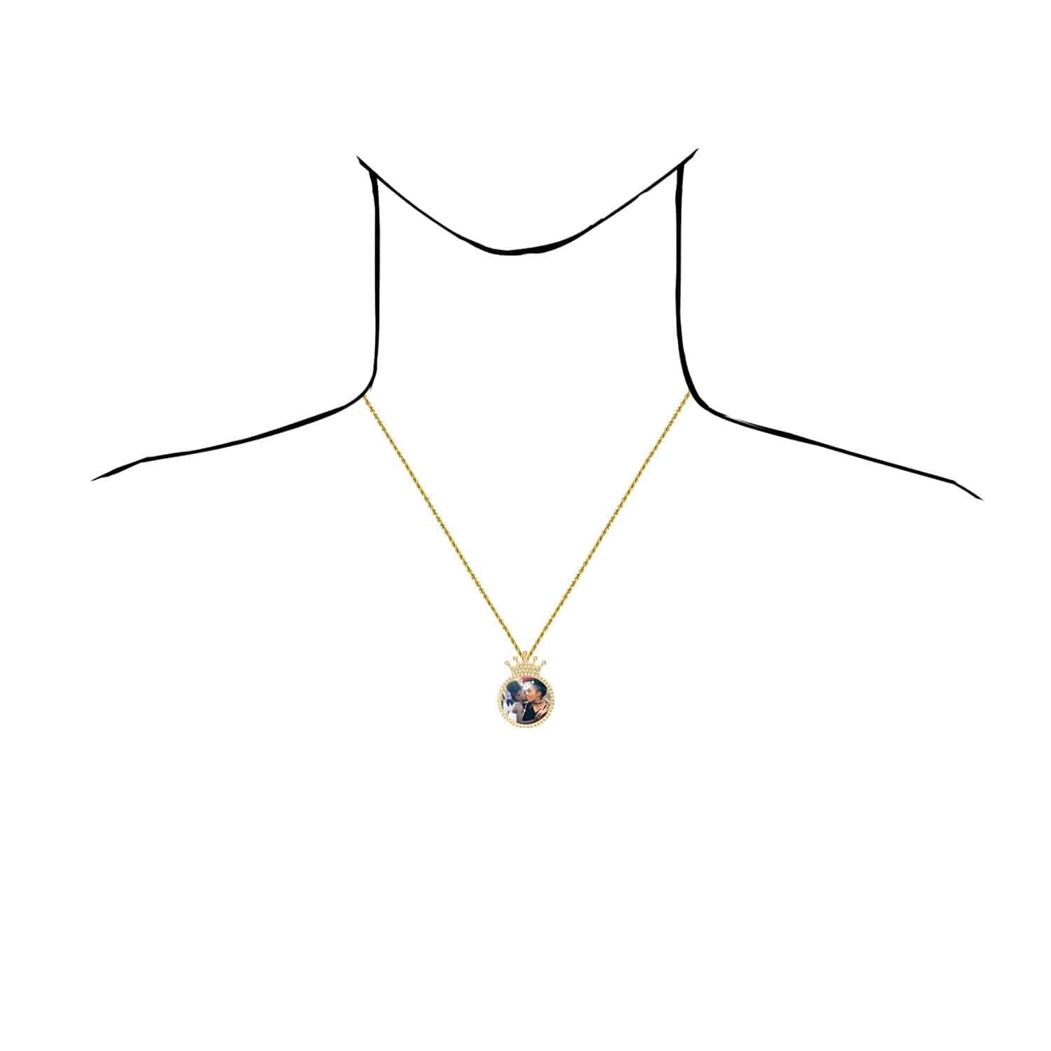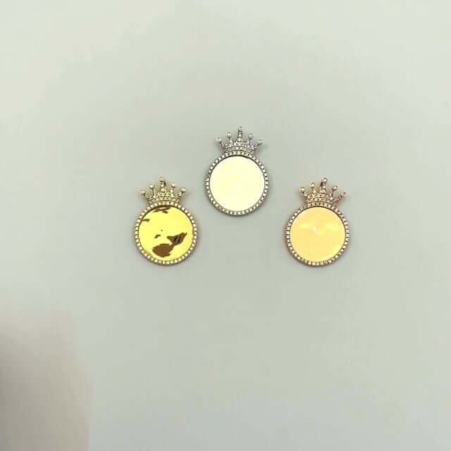 Read full return policy1.45CTW Natural Diamond 14K Gold Medallion Memory Picture Crown Pendant 1.5"