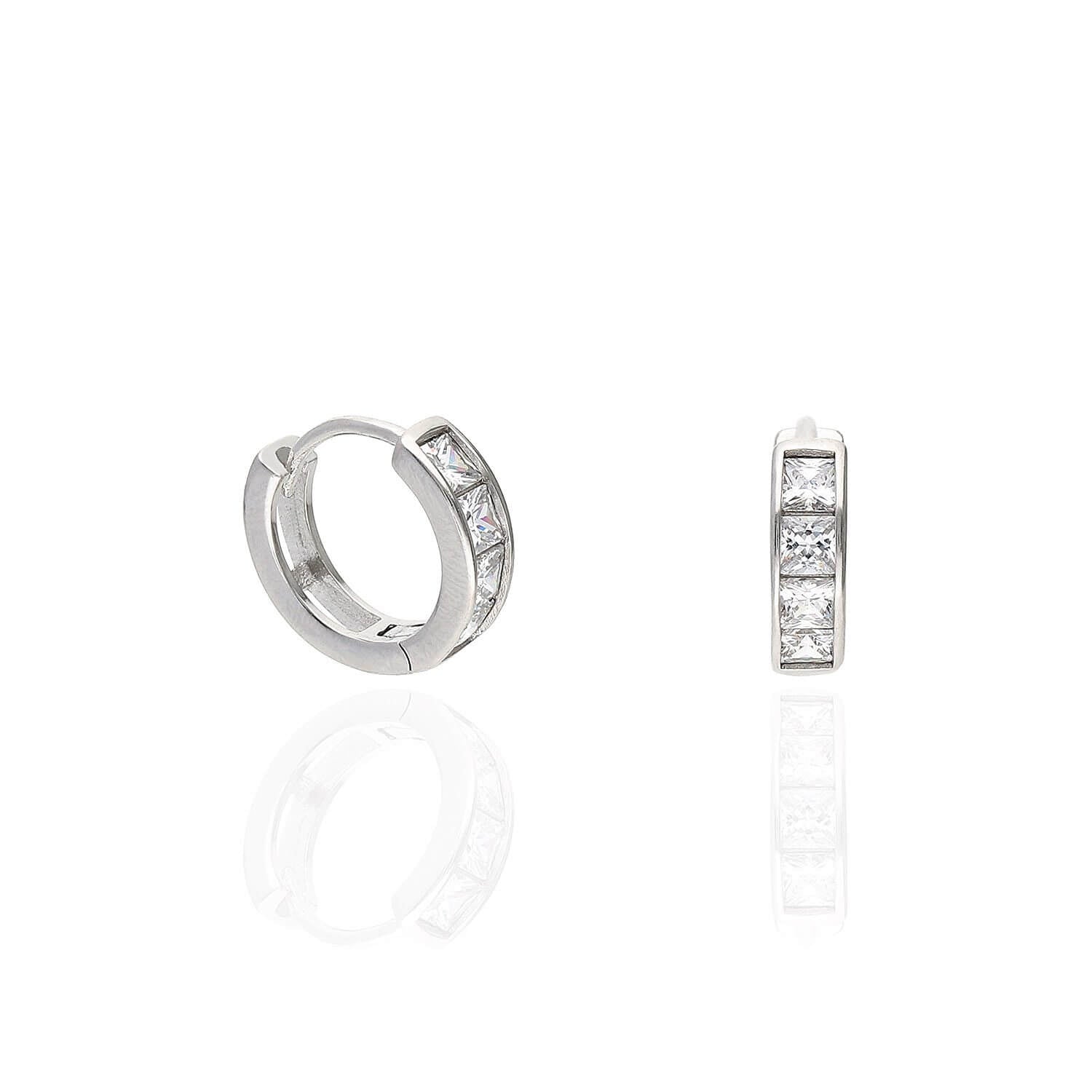 Read full return policy1.5Ct CZ Princess-Cut White Gold Over Silver Huggie Hoop Earrings