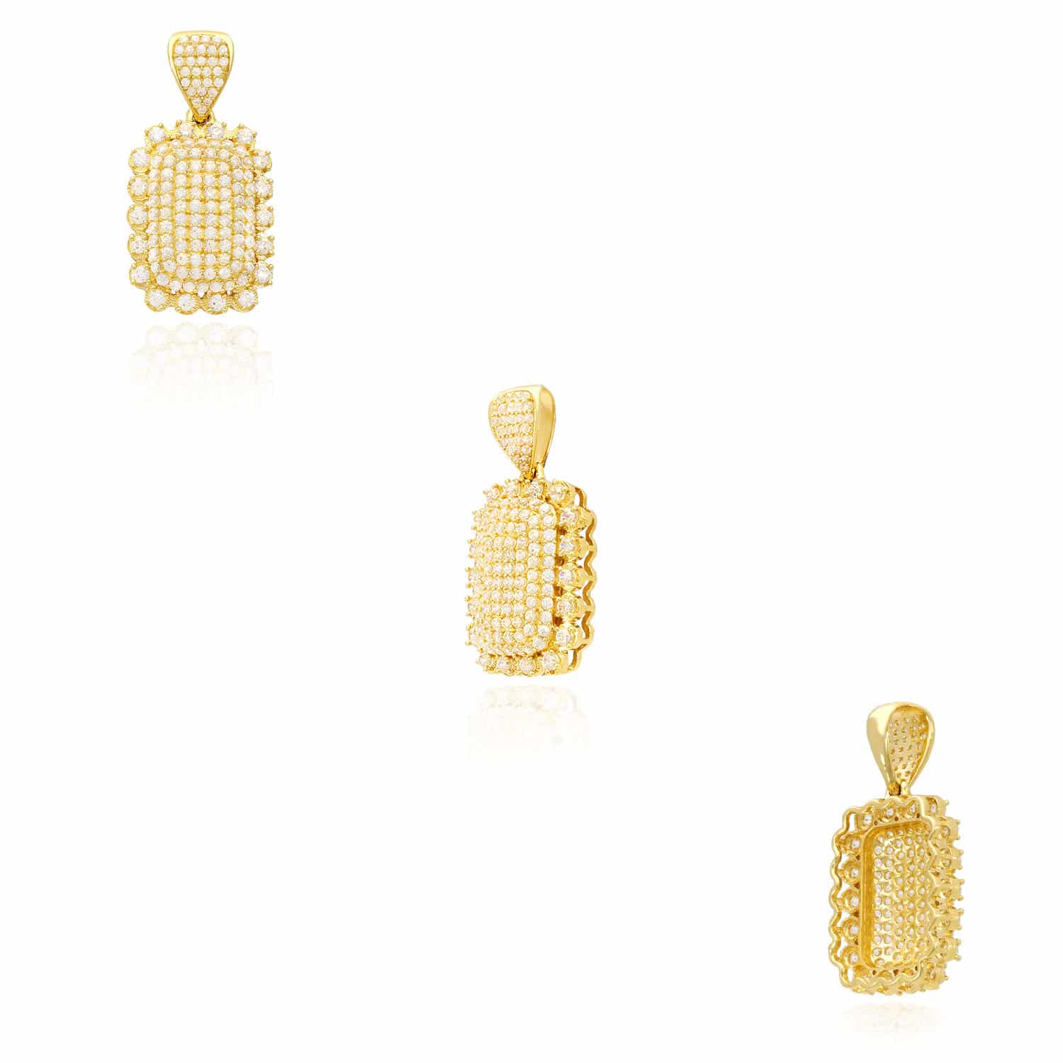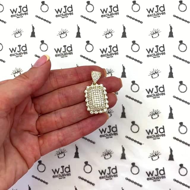 Read full return policy1.5CTW CZ 14K Yellow Gold Rectangle Cluster Frame Pendant 1.38"