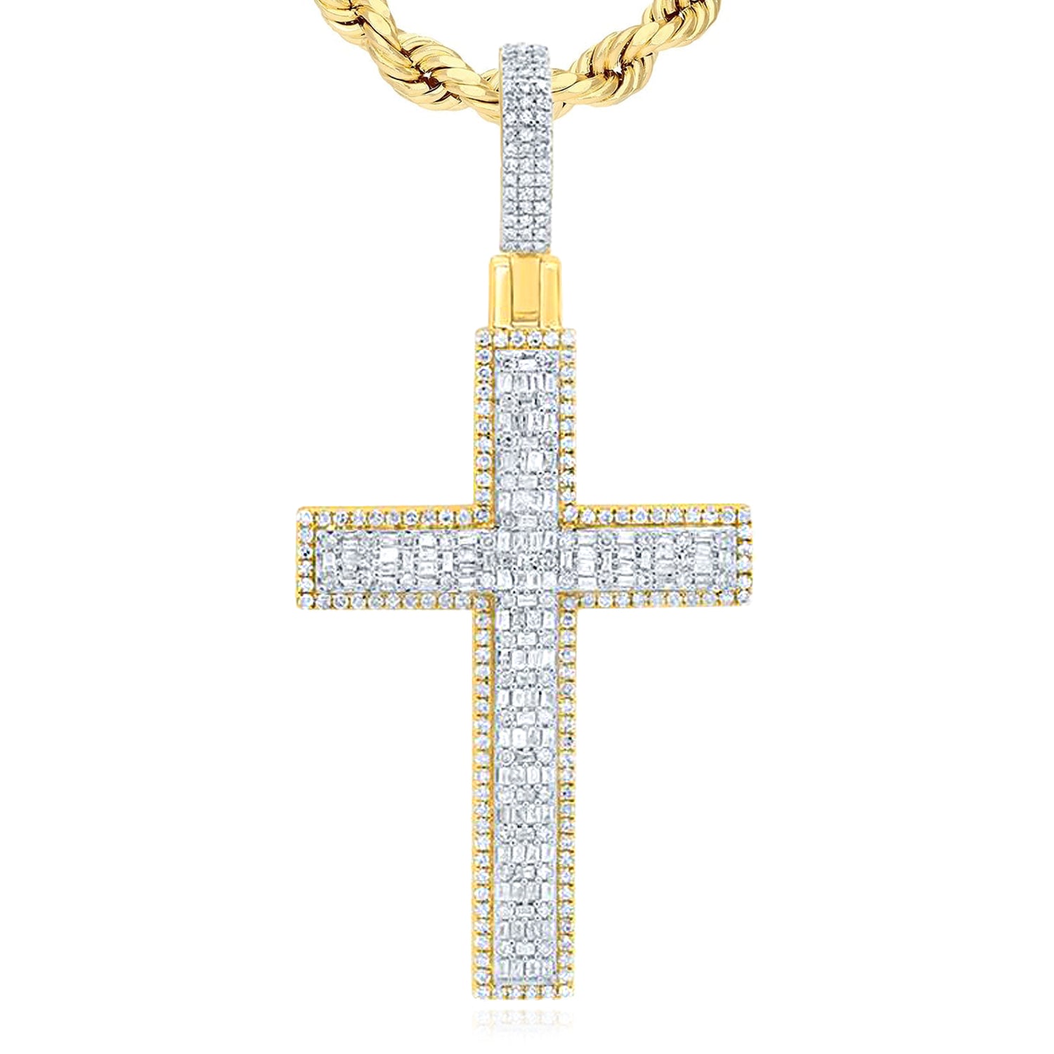 Read full return policy1.63CTW Natural Diamond 10K Yellow Gold Cross Pendant 1.8"