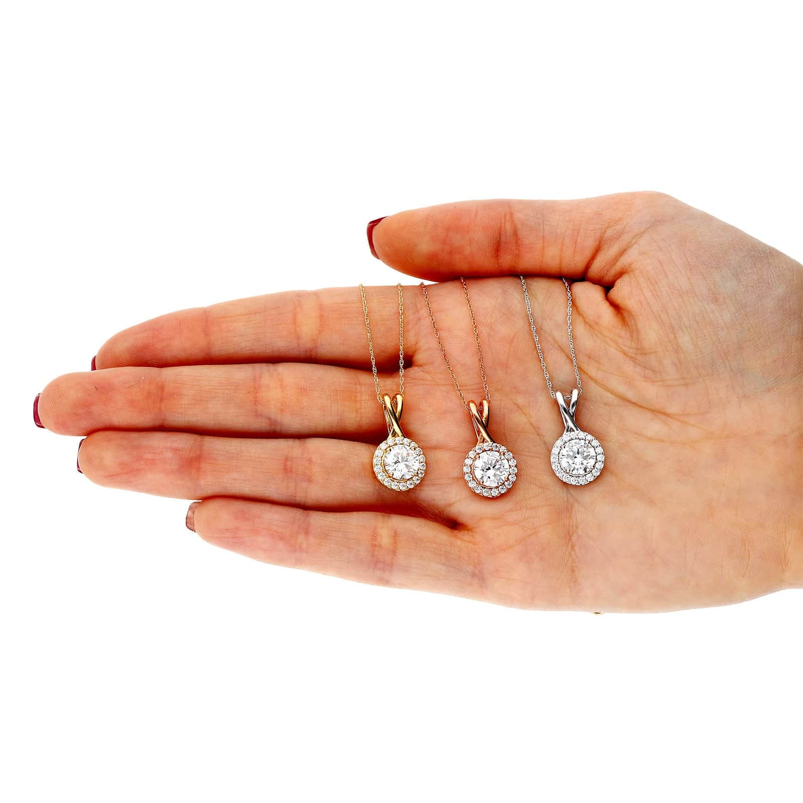 Read full return policy1.75CT CZ 14K Yellow White Rose Gold Halo Pendant with 18" Chain