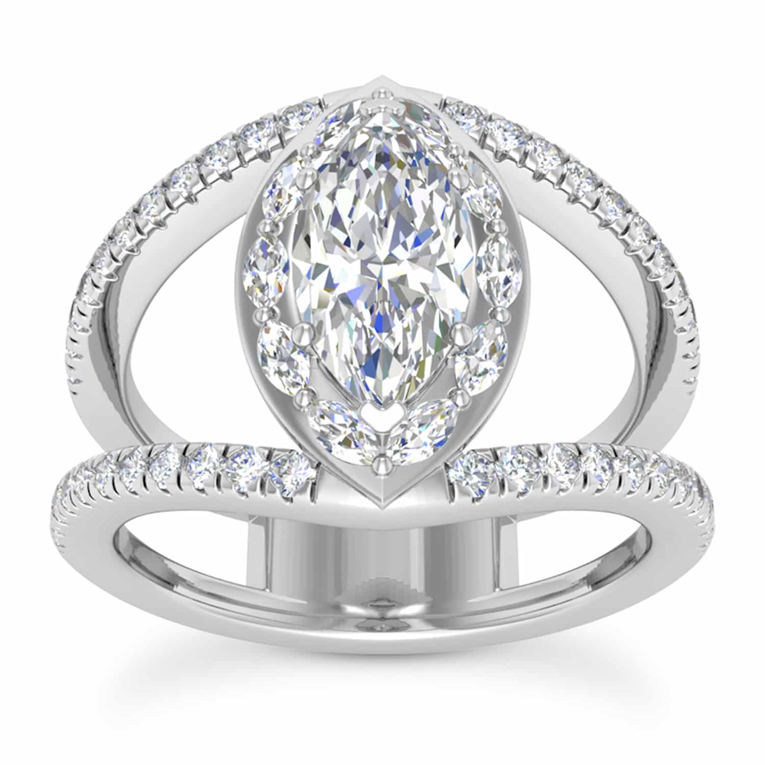 Read full return policy1.7CTW Natural Diamond Marquise Moissanite Split Halo 18K Gold White Bridal Ring