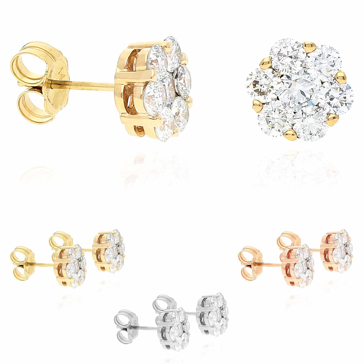 Read full return policy1.9 Ct Lab-Grown Diamond Cluster Flower Stud Earrings 14K Yellow White Rose Gold
