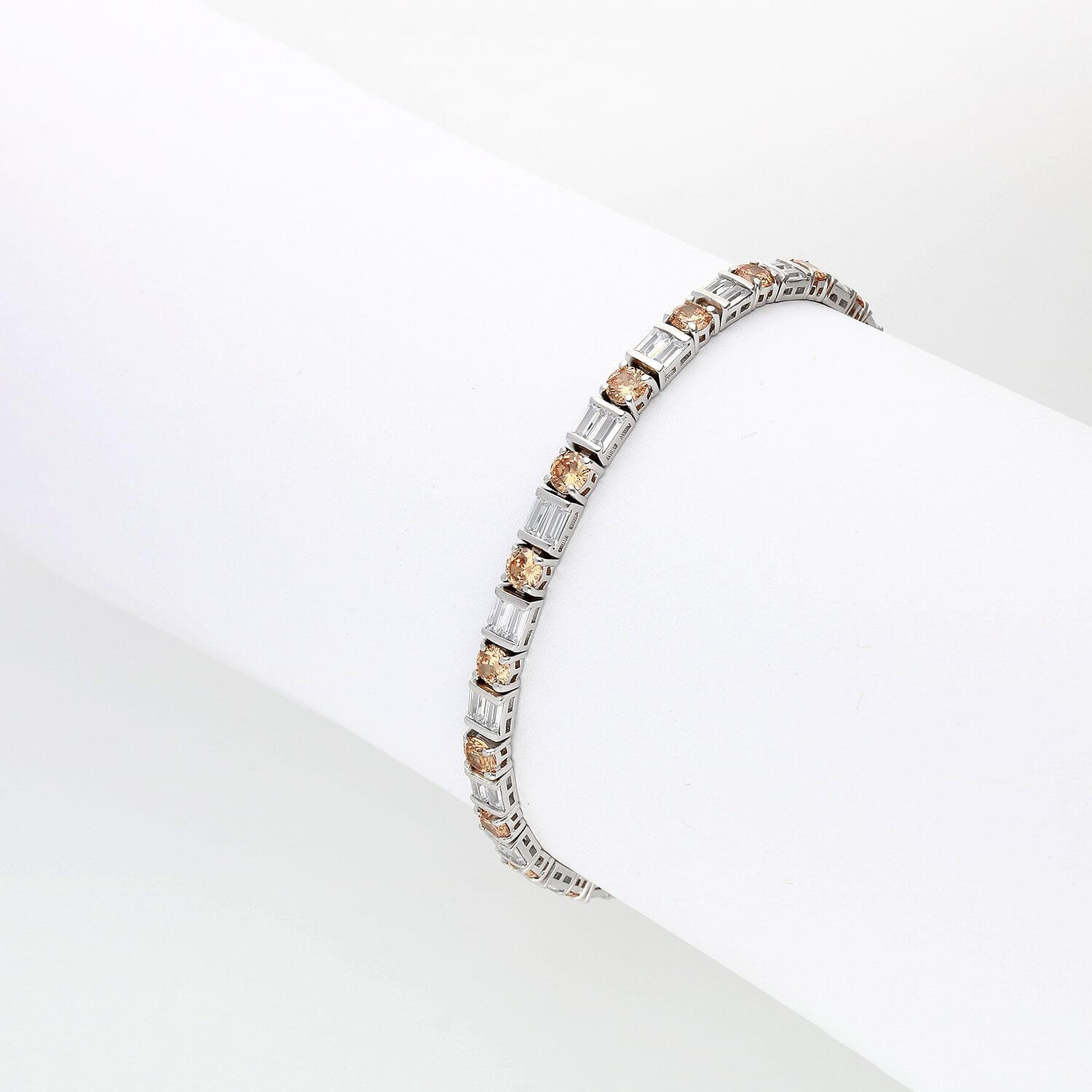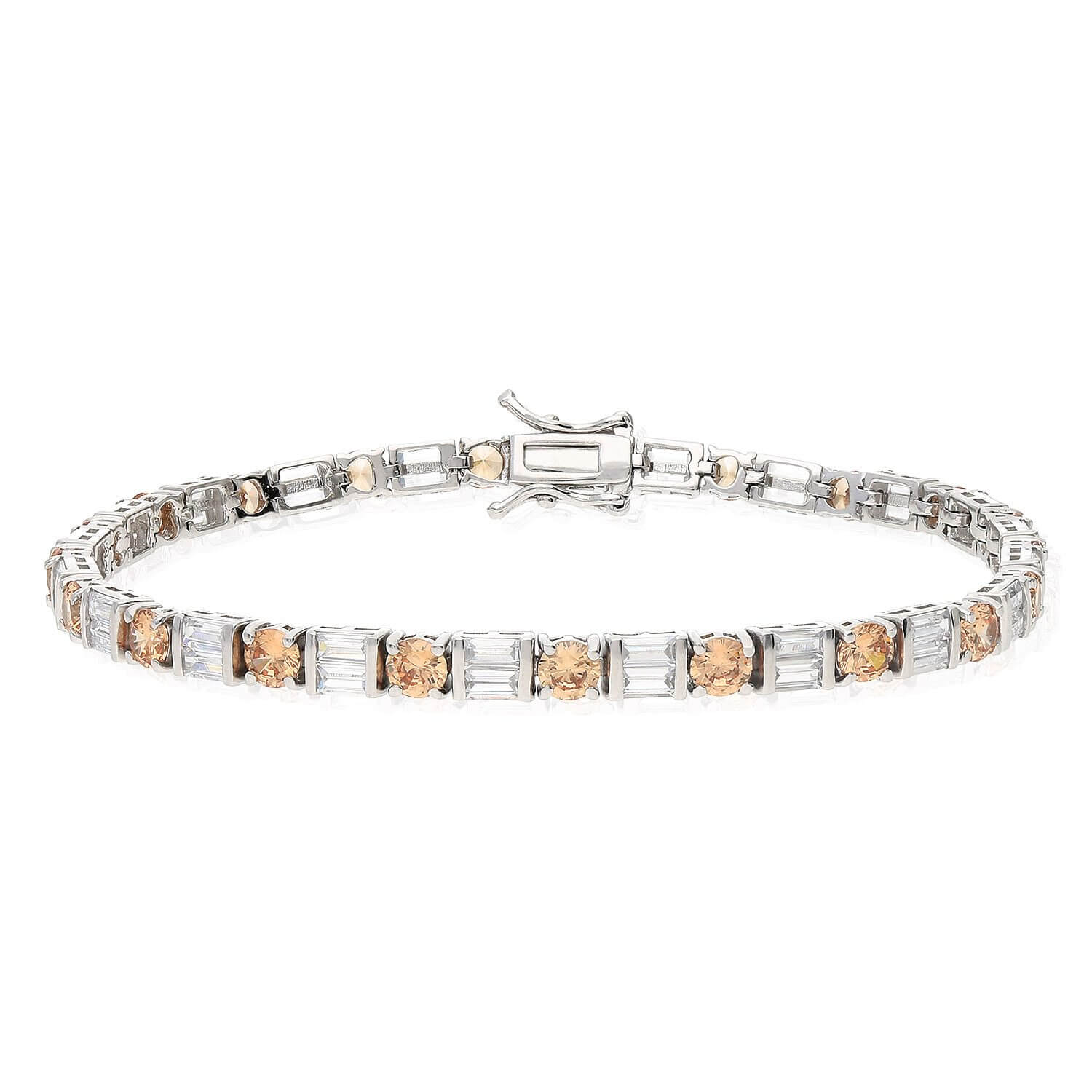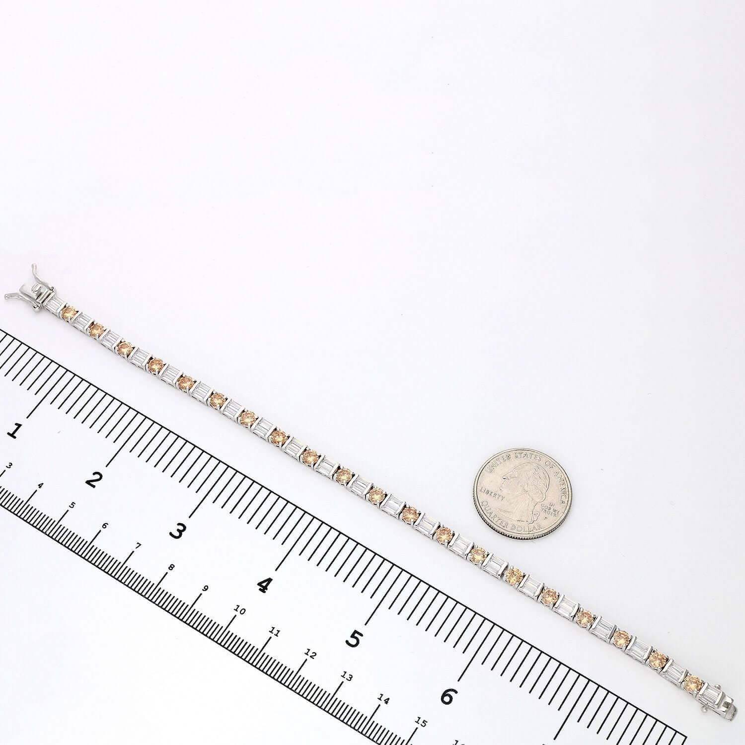 10.25CTW CZ Cognac & White Baguette Round Sterling Silver Tennis Bracelet 7.5"Couldn't load pickup availability