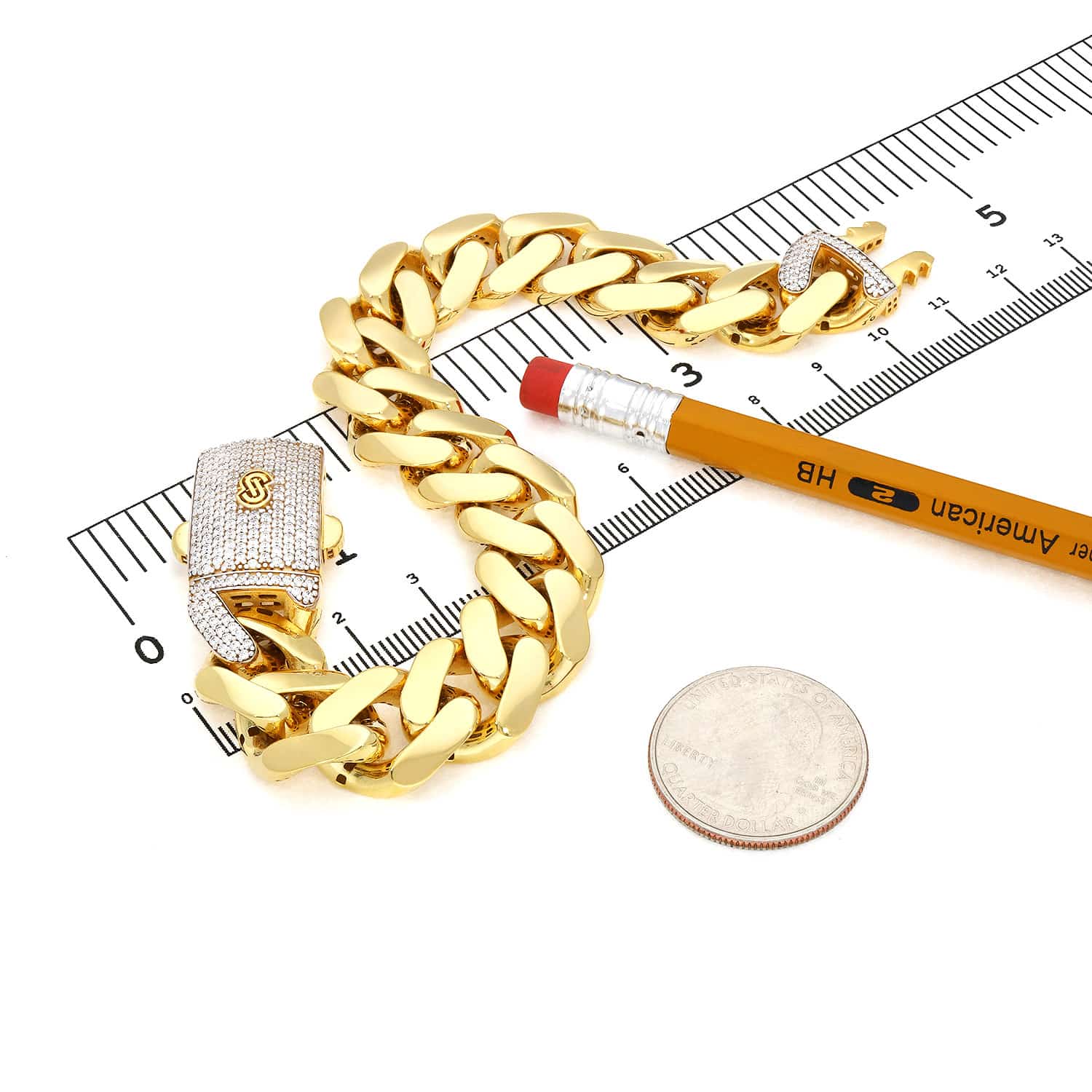 10K Gold CZ Box Clasp 15mm Miami Monaco Bracelet (Hollow) 8.5"Couldn't load pickup availability