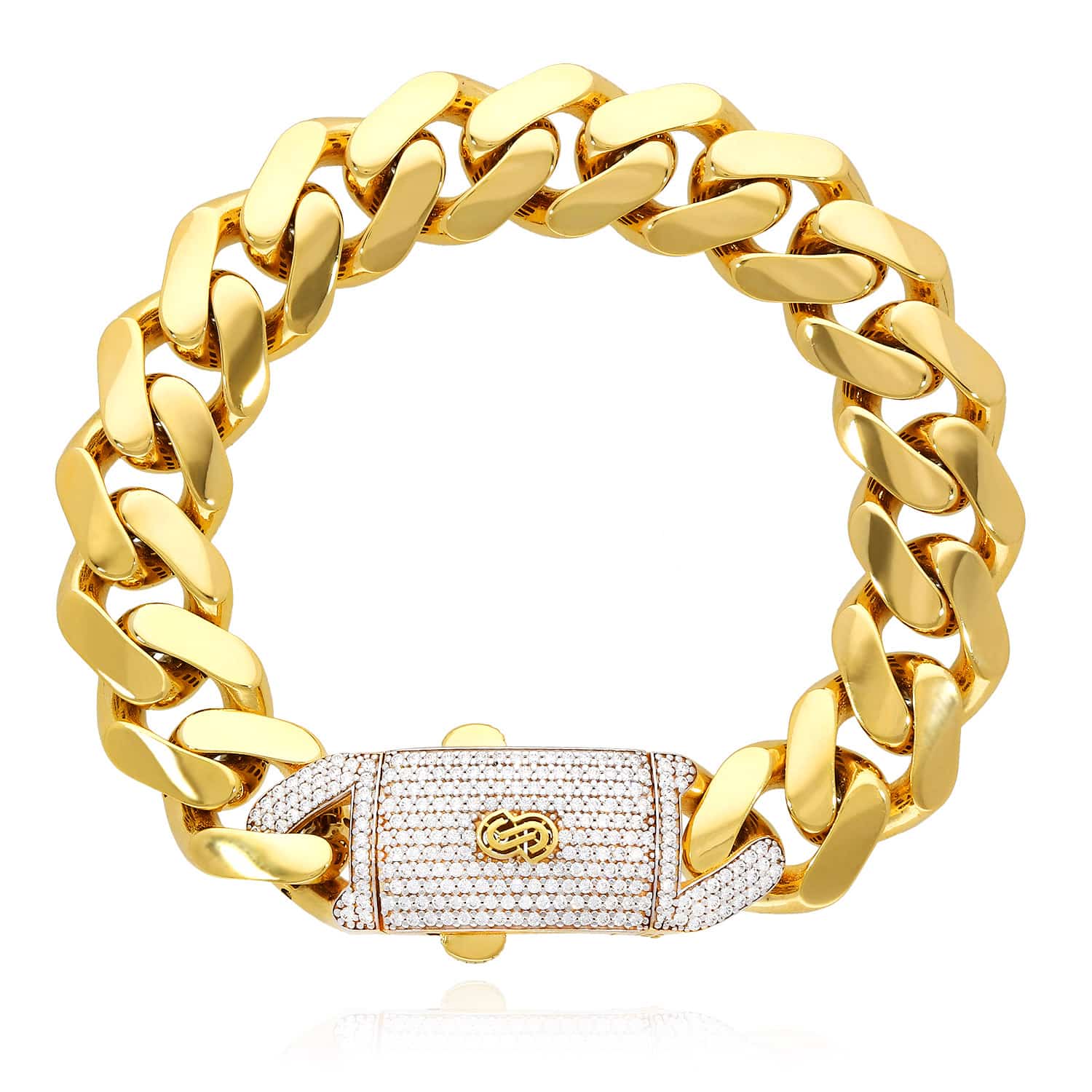 Read full return policy10K Gold CZ Box Clasp 15mm Miami Monaco Bracelet (Hollow) 8.5"