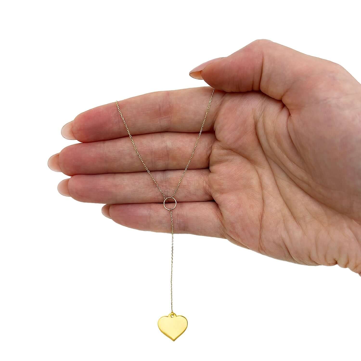 10K Gold Heart Lariat Adjustable 16"-18" Necklace