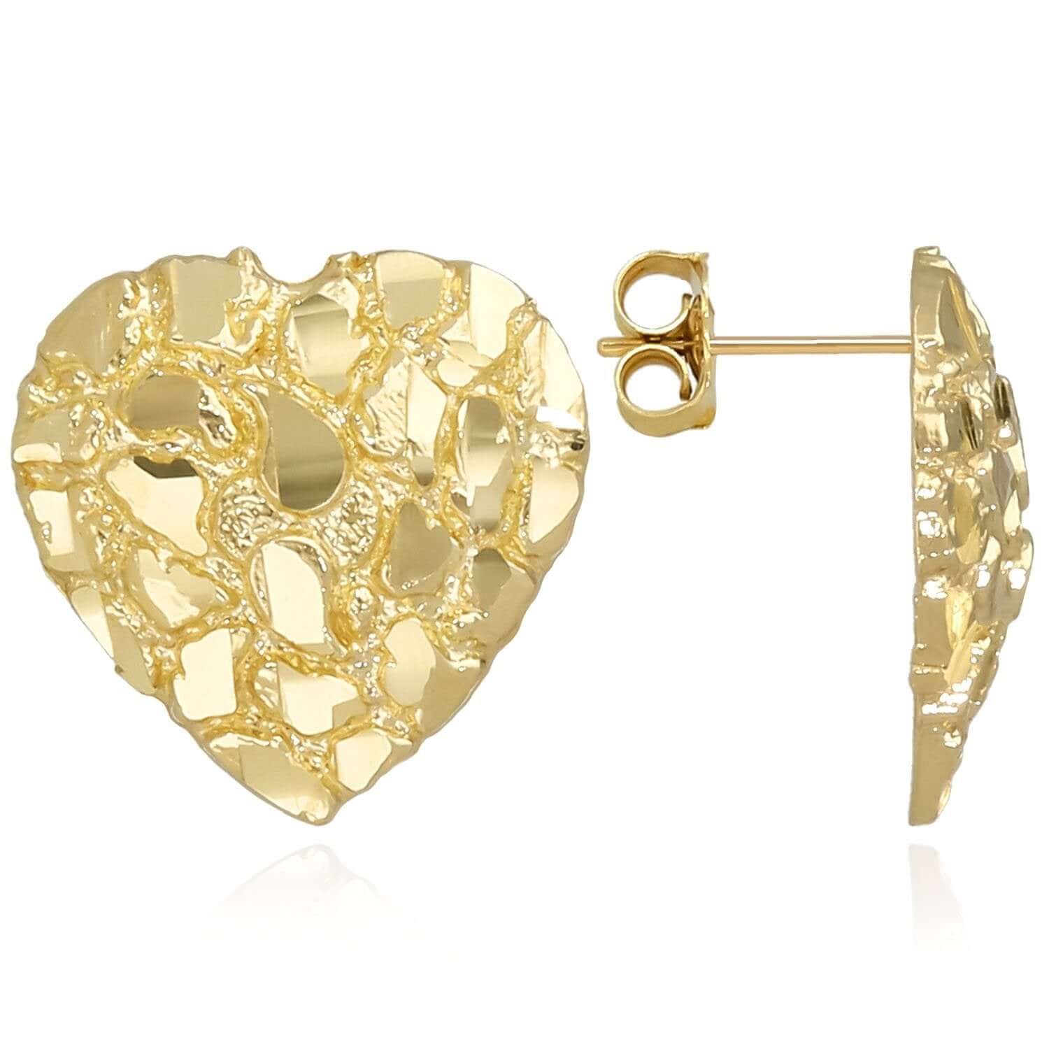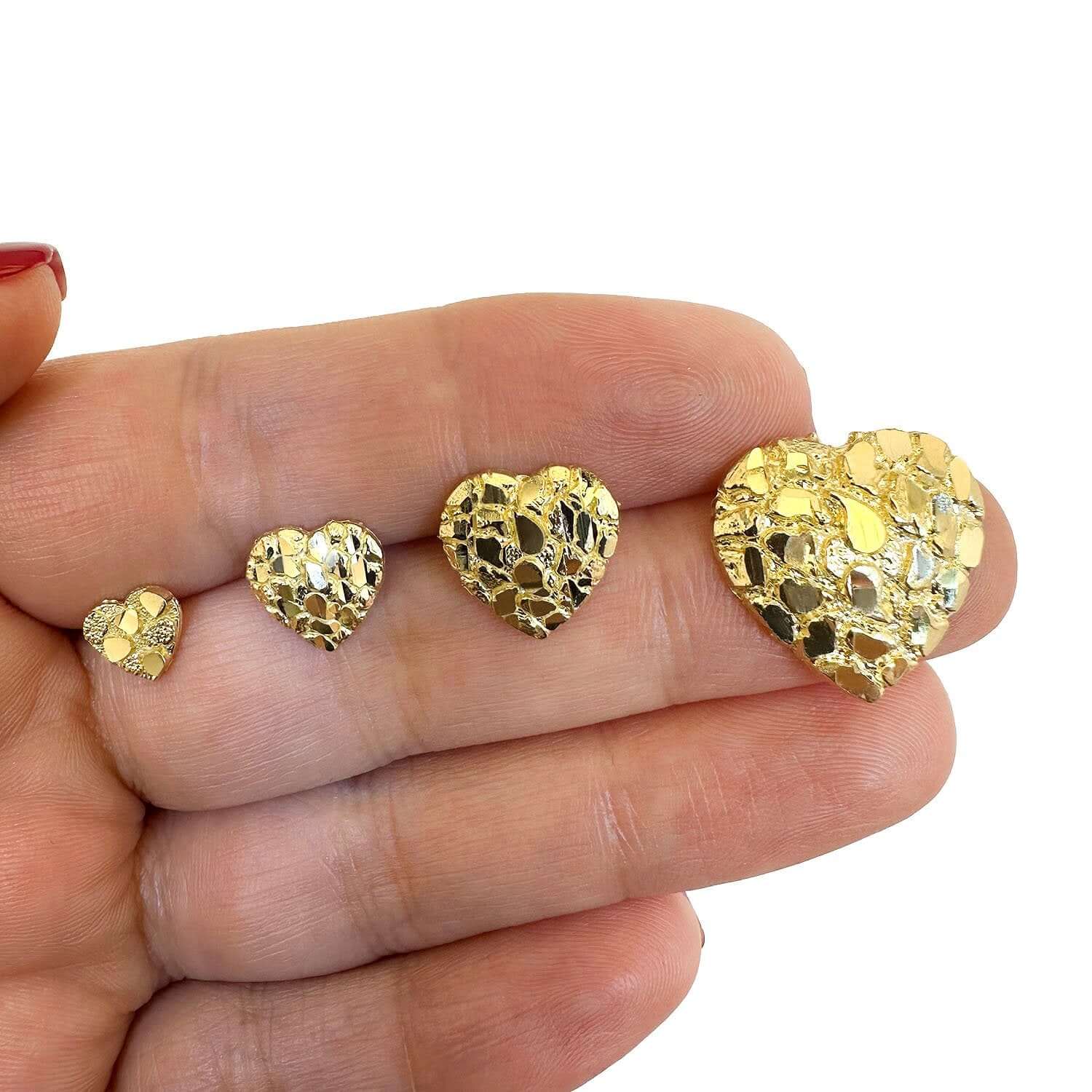 10K Gold Nugget Heart Push Back Stud Earrings 7mm, 10mm, 12mm, 18mmCouldn't load pickup availability