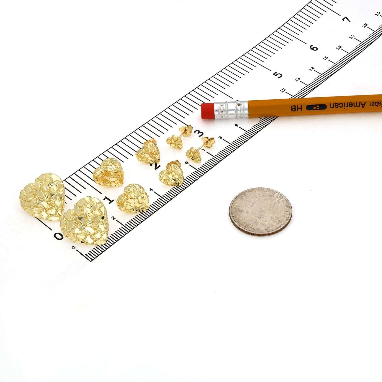 Read full return policy10K Gold Nugget Heart Push Back Stud Earrings 7mm, 10mm, 12mm, 18mm