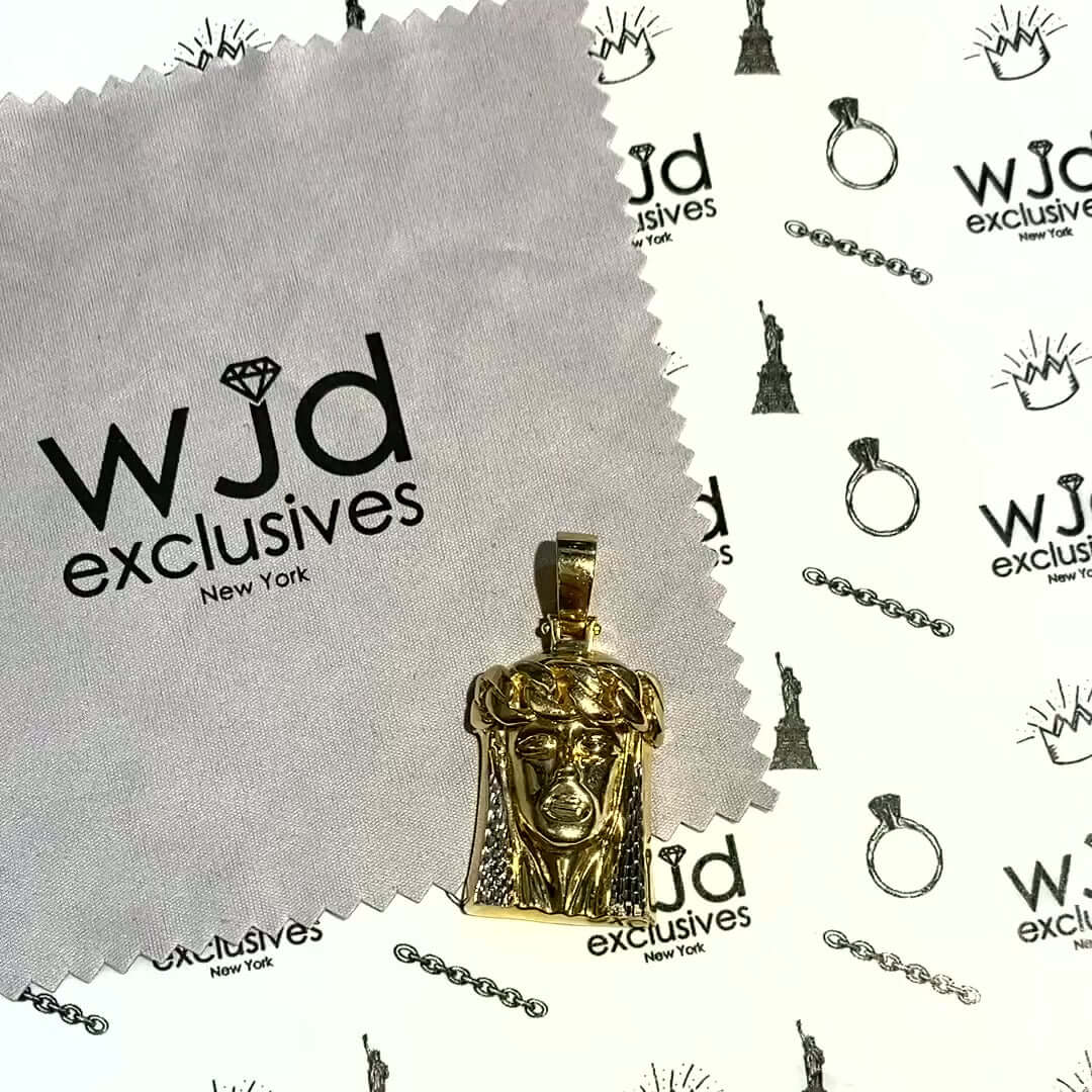 10k Yellow White Gold Textured Jesus Face Head Pendant 1.4"-1.8"Couldn't load pickup availability