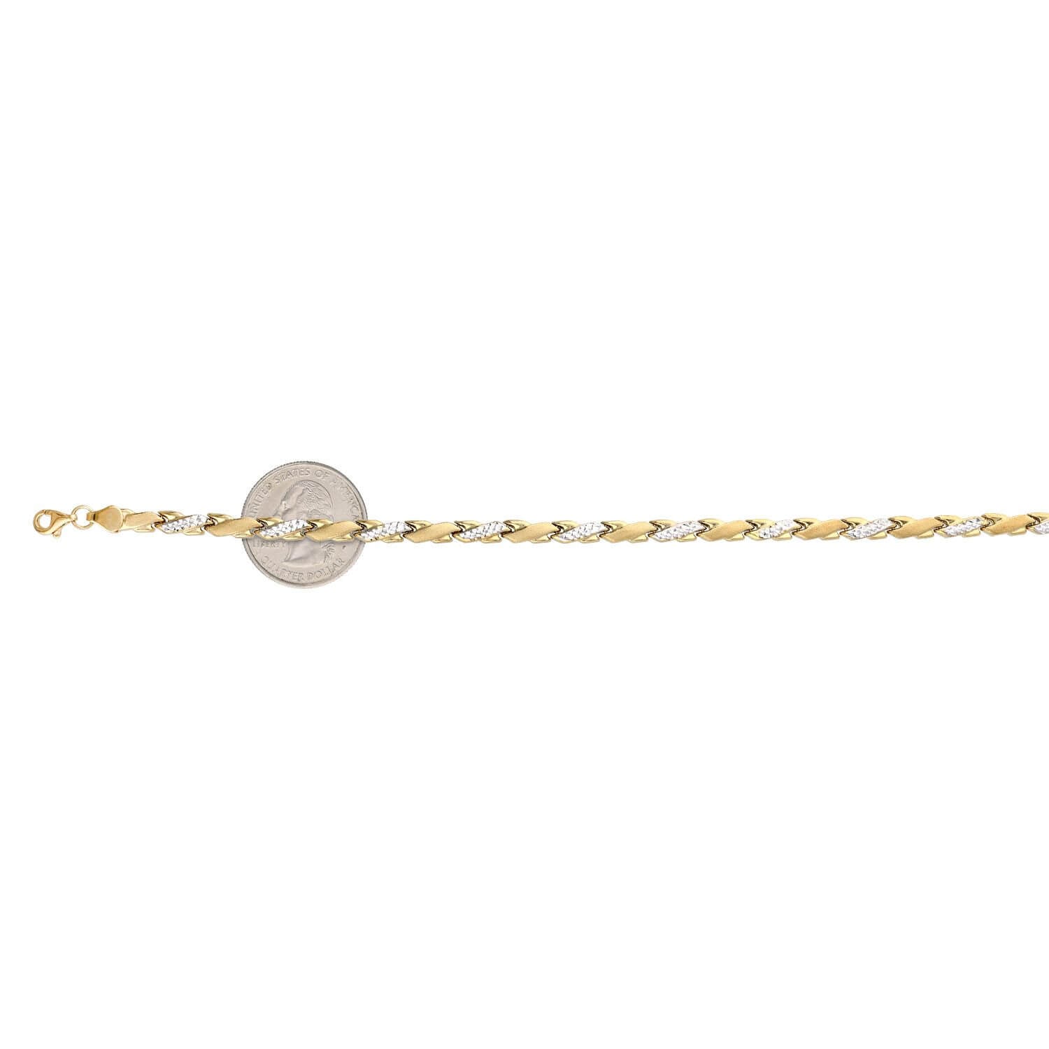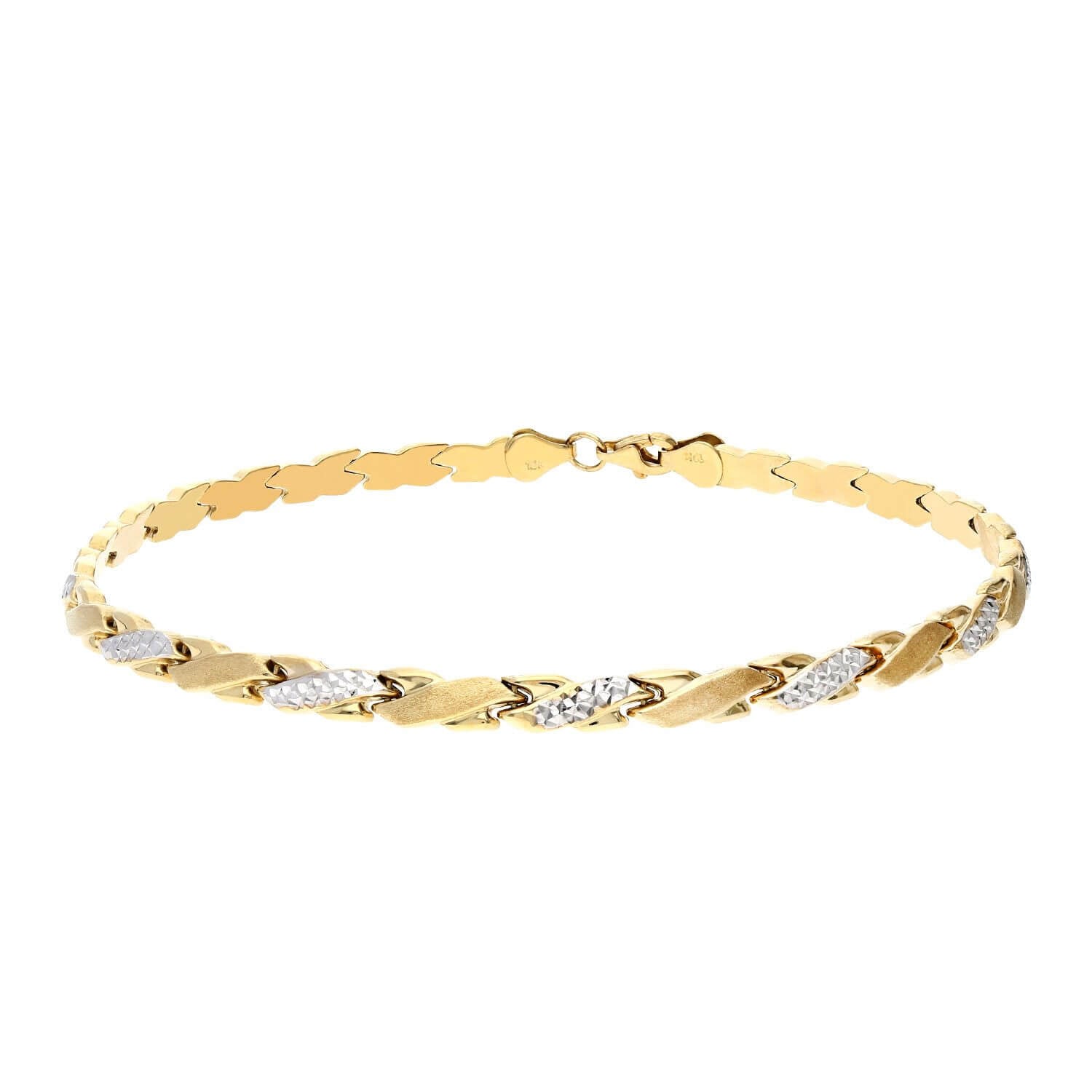 Read full return policy10K Yellow White Gold 4.5mm Fancy Stampato X Ankle Bracelet (Hollow) 10"
