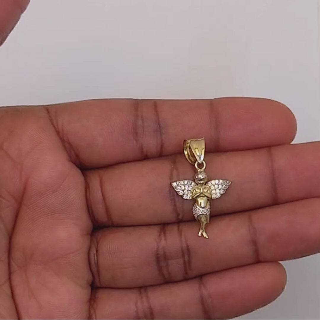 10K Two-Tone Gold Cherub Pendant with CZ Stones 1.2"