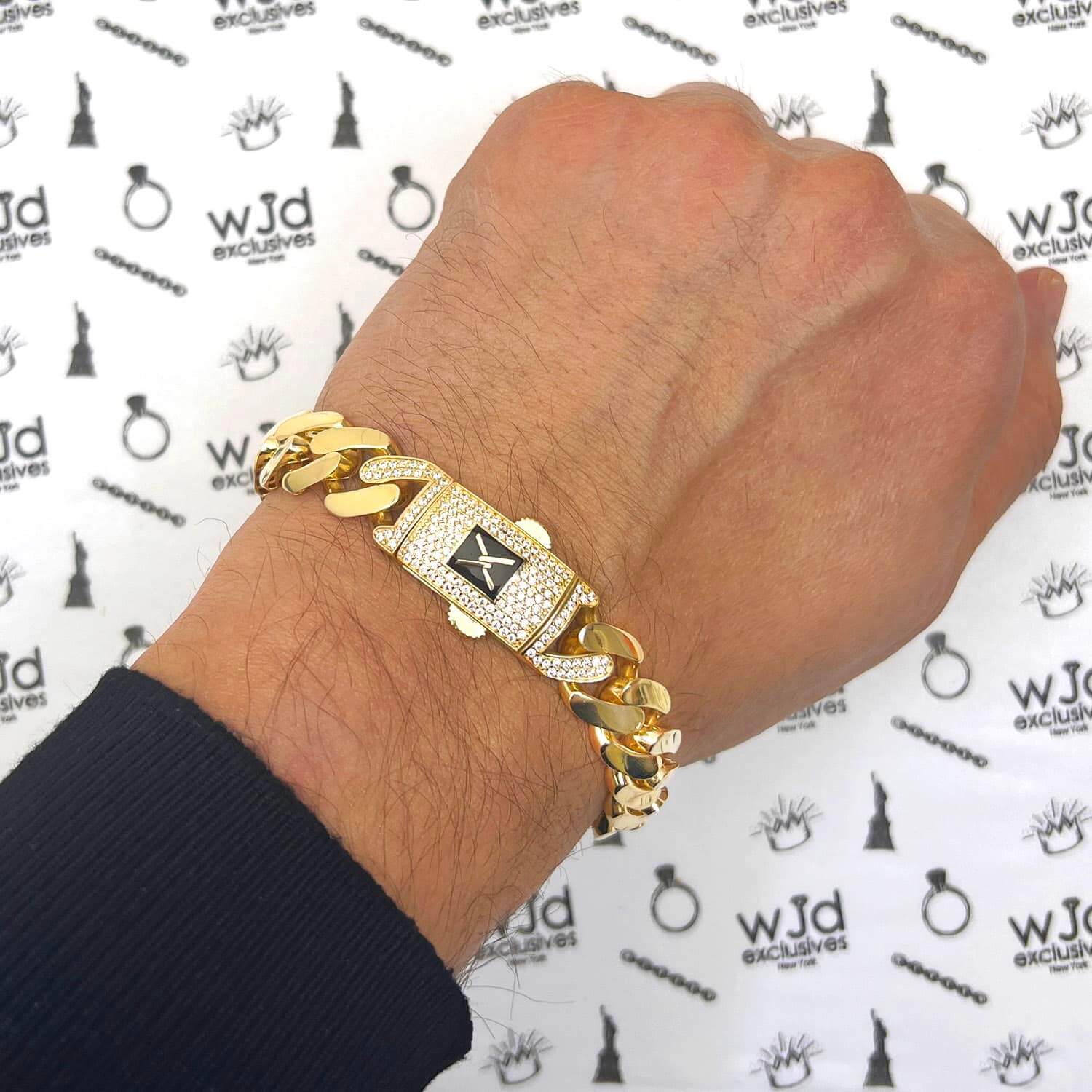 Read full return policy10K Yellow Gold 13mm Miami CZ Pave Box Clasp Bracelet (Hollow) 8.5"