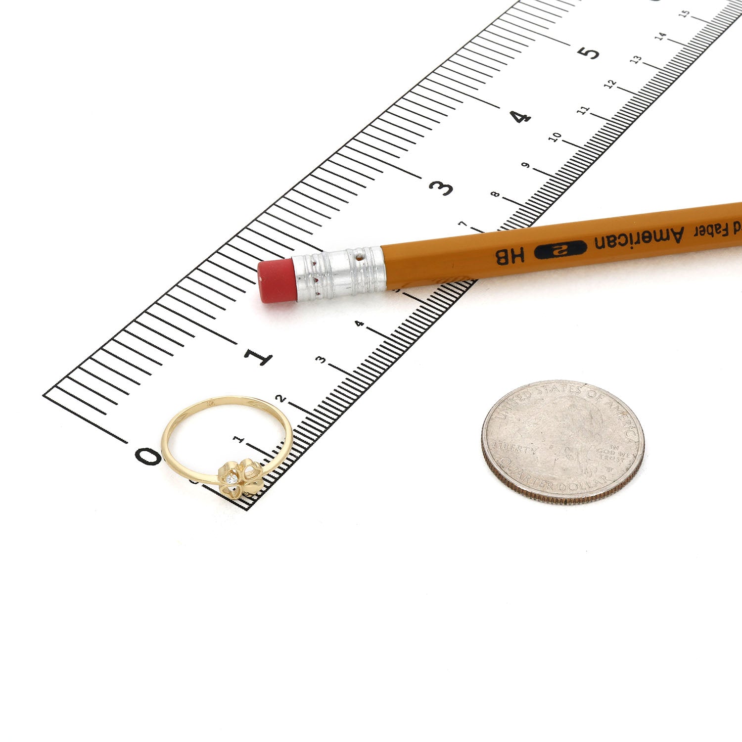 10K Yellow Gold 0.03CTW CZ Open Heart Clover Stackable RingCouldn't load pickup availability