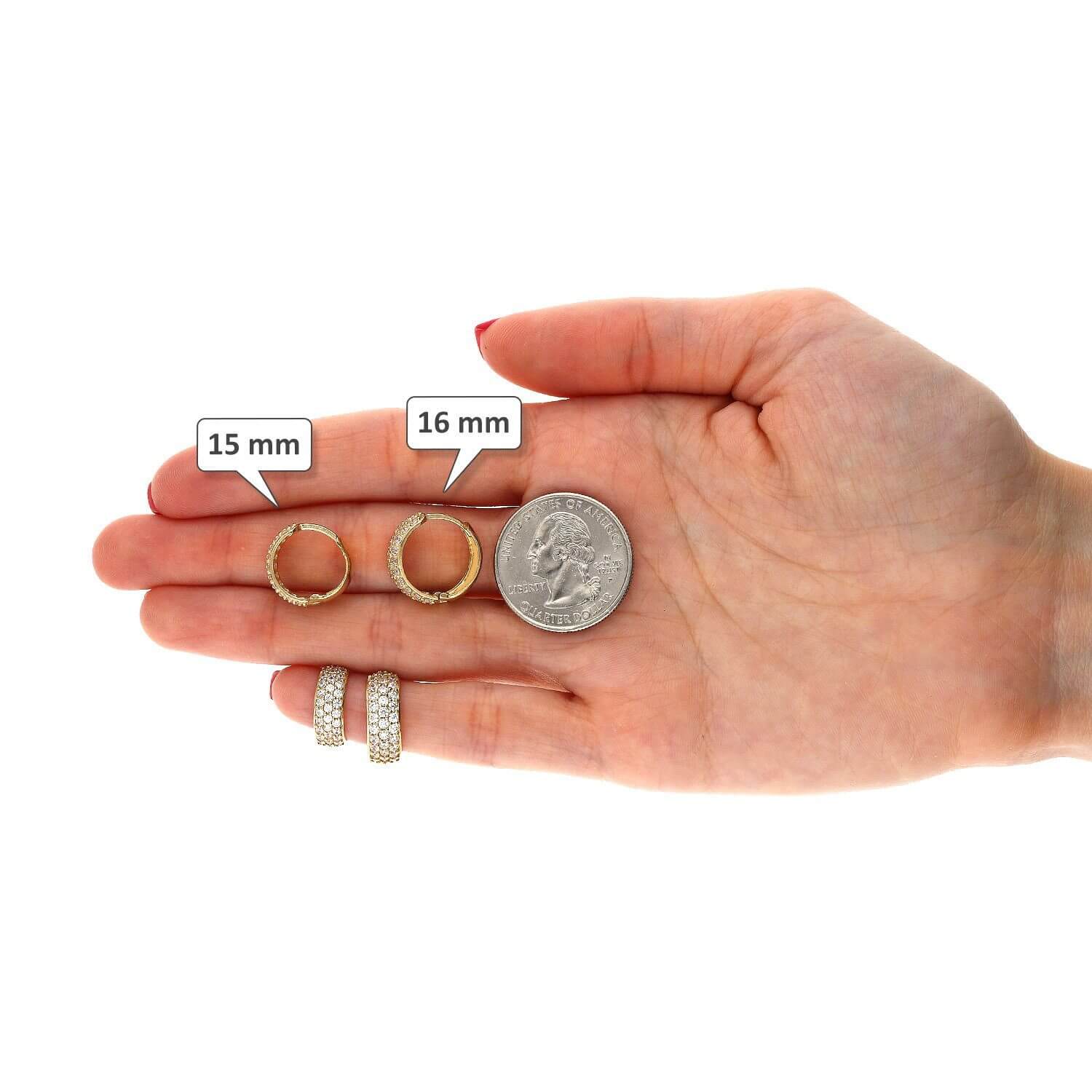 10K Yellow Gold 3-Row Prong Set CZ Huggie Hoop Earrings 15mm/16mmCouldn't load pickup availability
