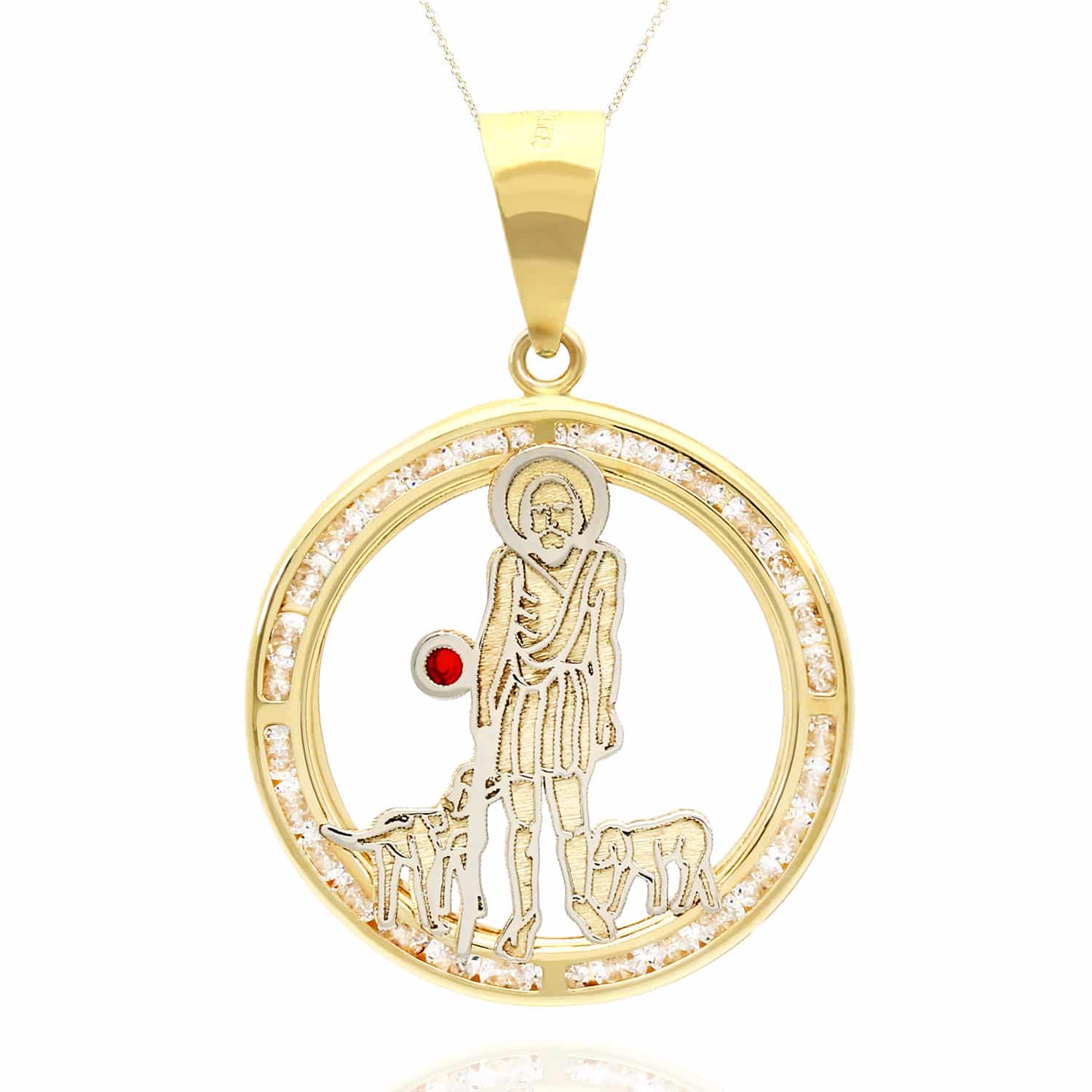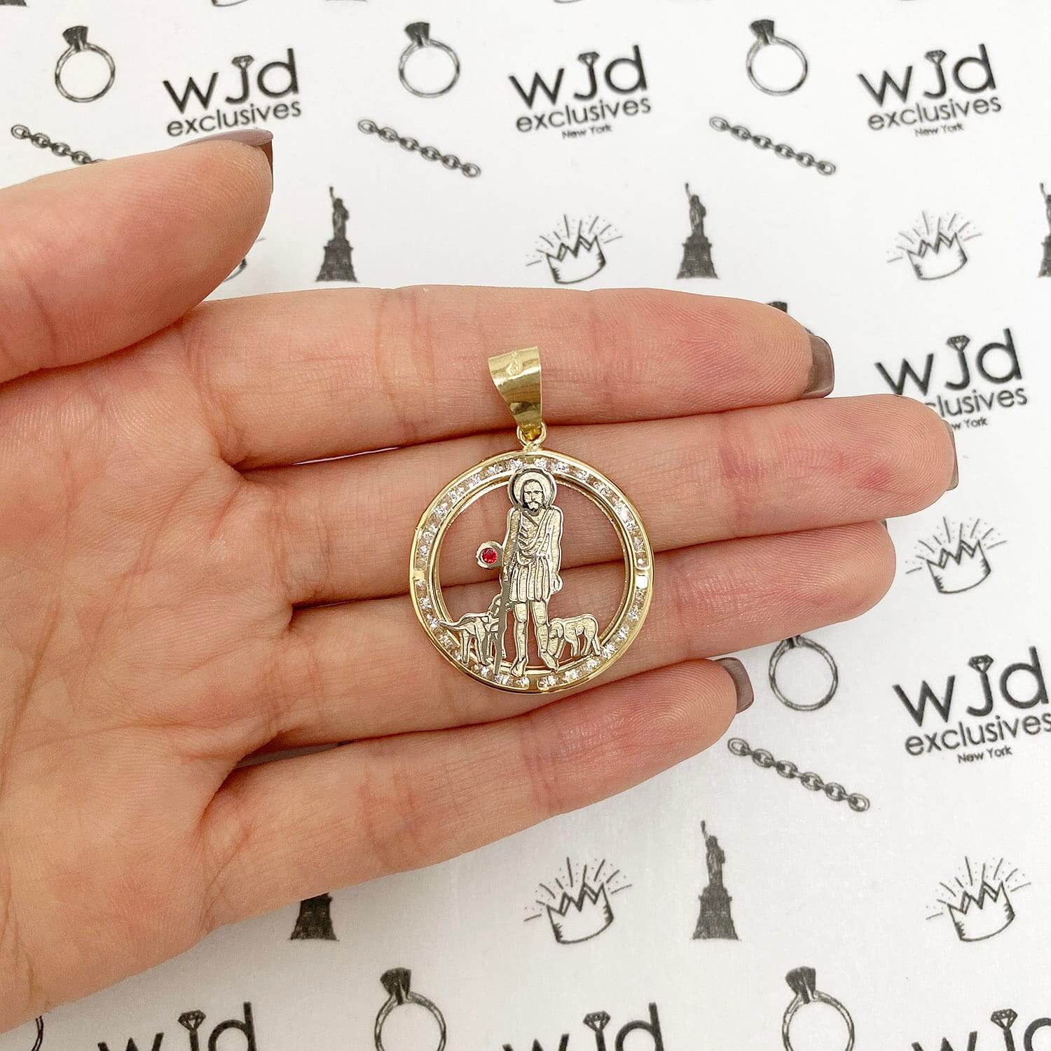 10K Yellow Gold CZ And Ruby Saint Lazare Round Medallion PendantCouldn't load pickup availability